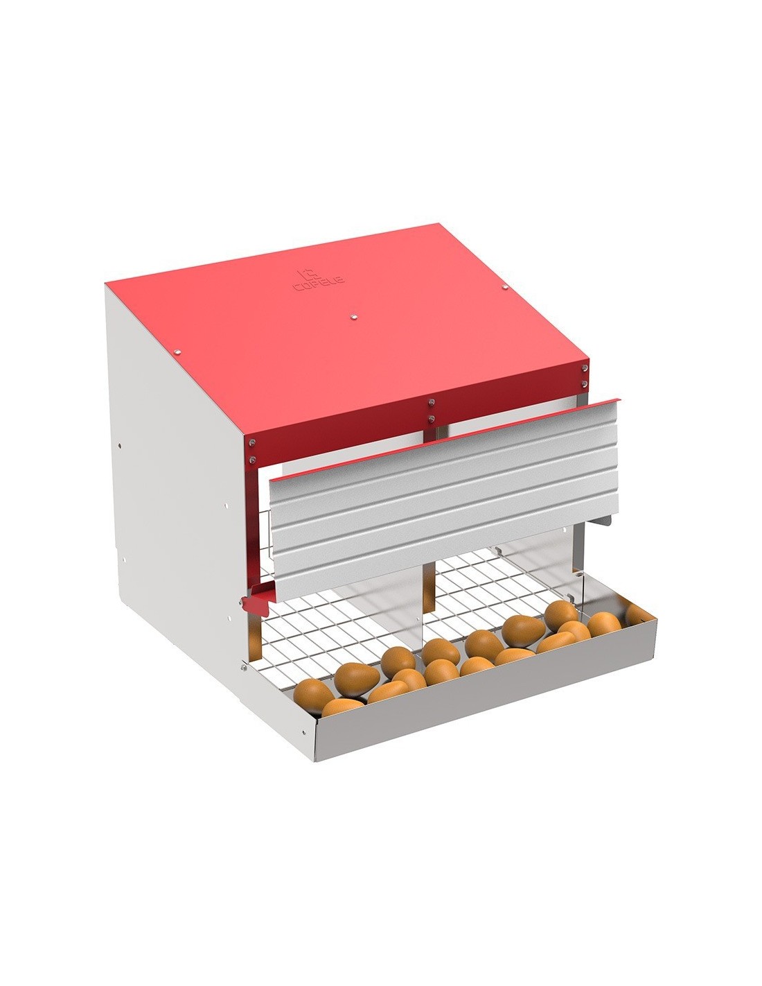 Hecho con chapa galvanizada de alta resistencia, este ponedero garantiza protección contra la intemperie y una larga vida útil.