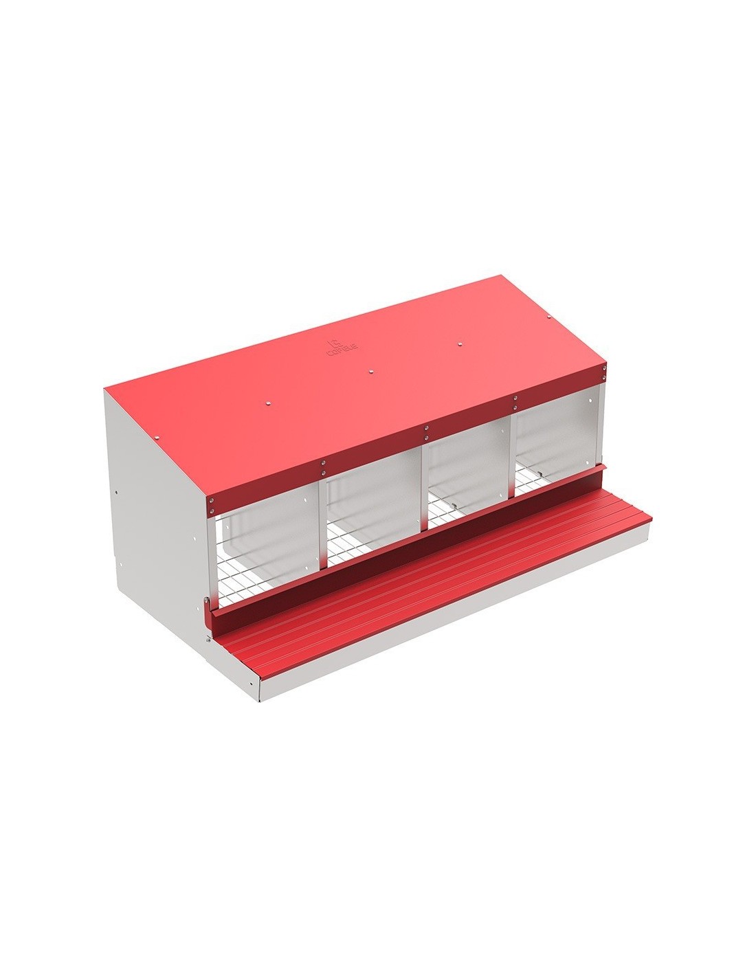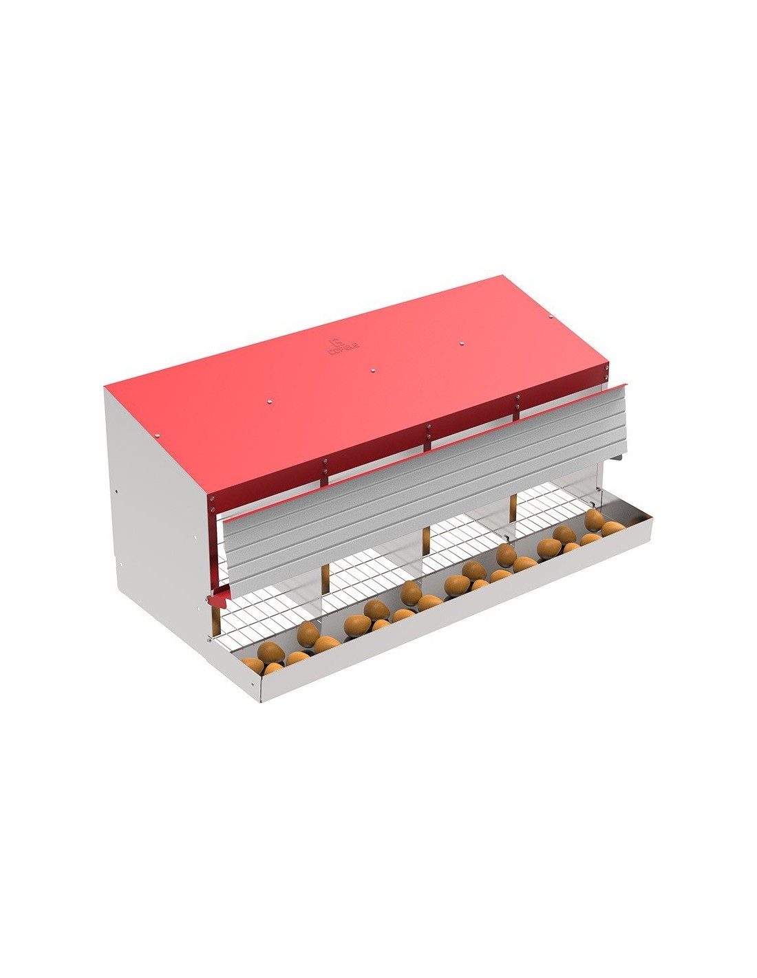 Con cuatro departamentos espaciosos, este ponedero ofrece un entorno seguro y cómodo para que las gallinas puedan anidar.