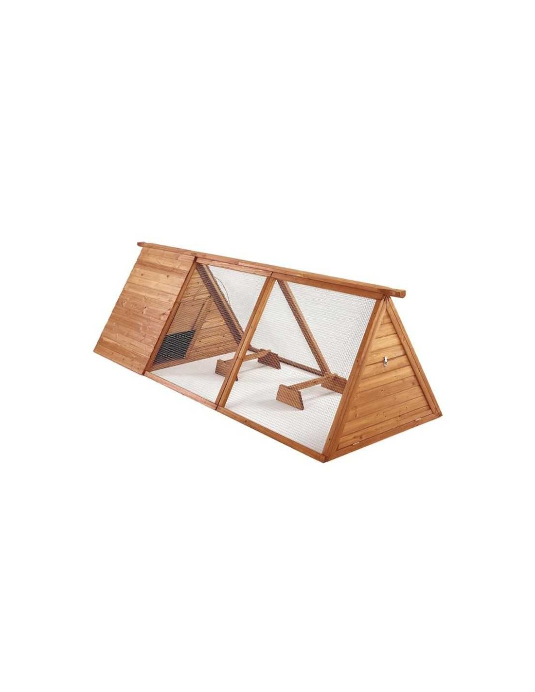 Su diseño espacioso permite una buena circulación de aire, y su techo a dos aguas proporciona protección contra el clima adverso.