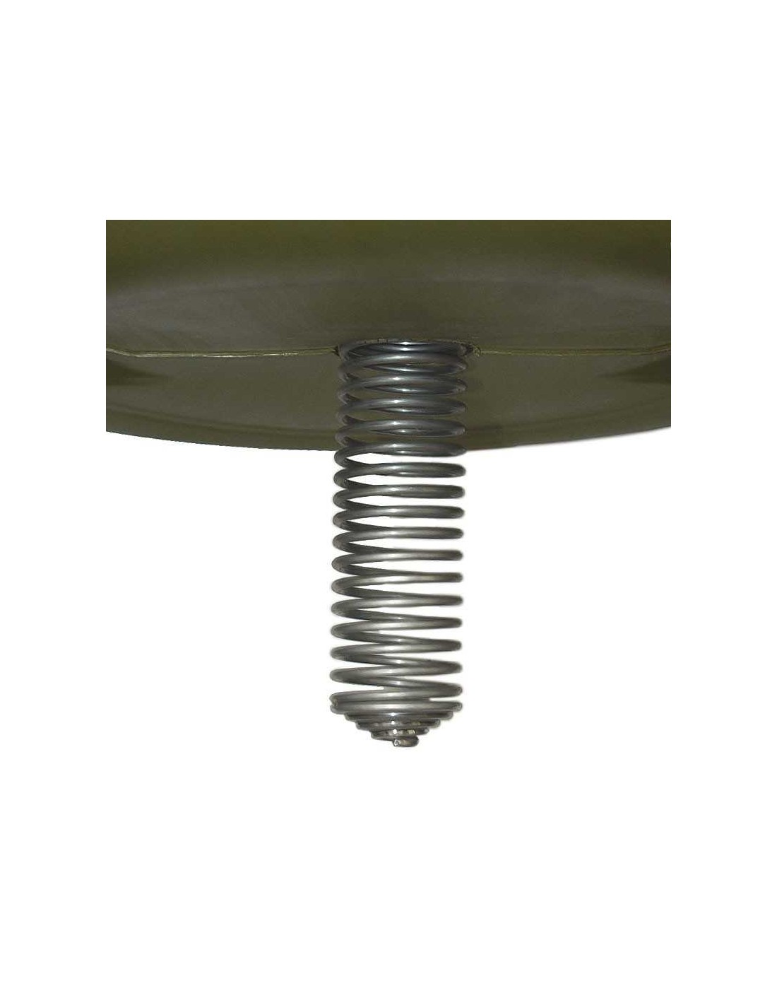 Este dispensador permite que las gallinas piquen la comida para obtener el grano alojado en el muelle, simulando su comportamiento en la naturaleza.