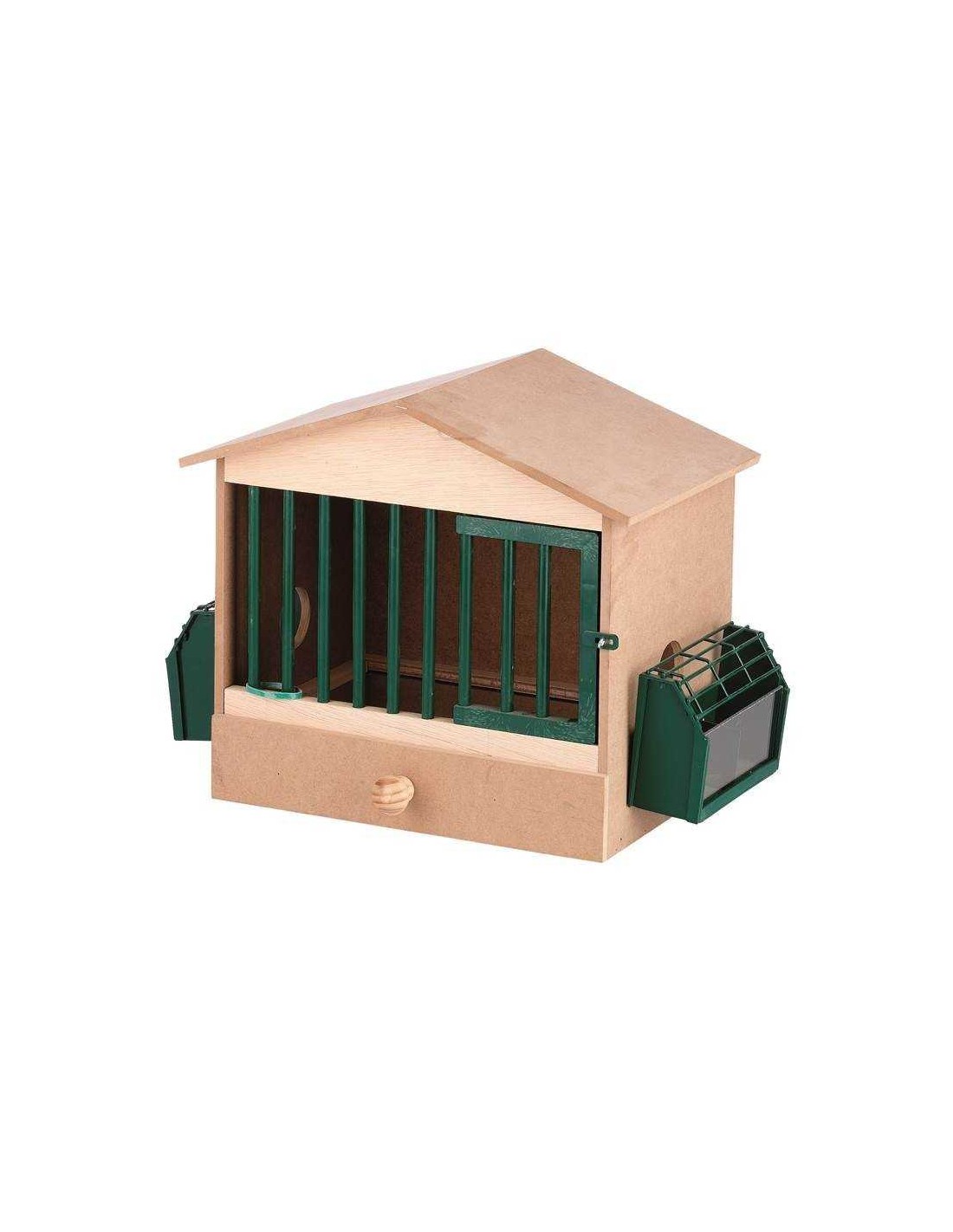 Su diseño incluye un comedero y bebedero integrados, facilitando el acceso a alimento y agua sin necesidad de manipular la estructura.
