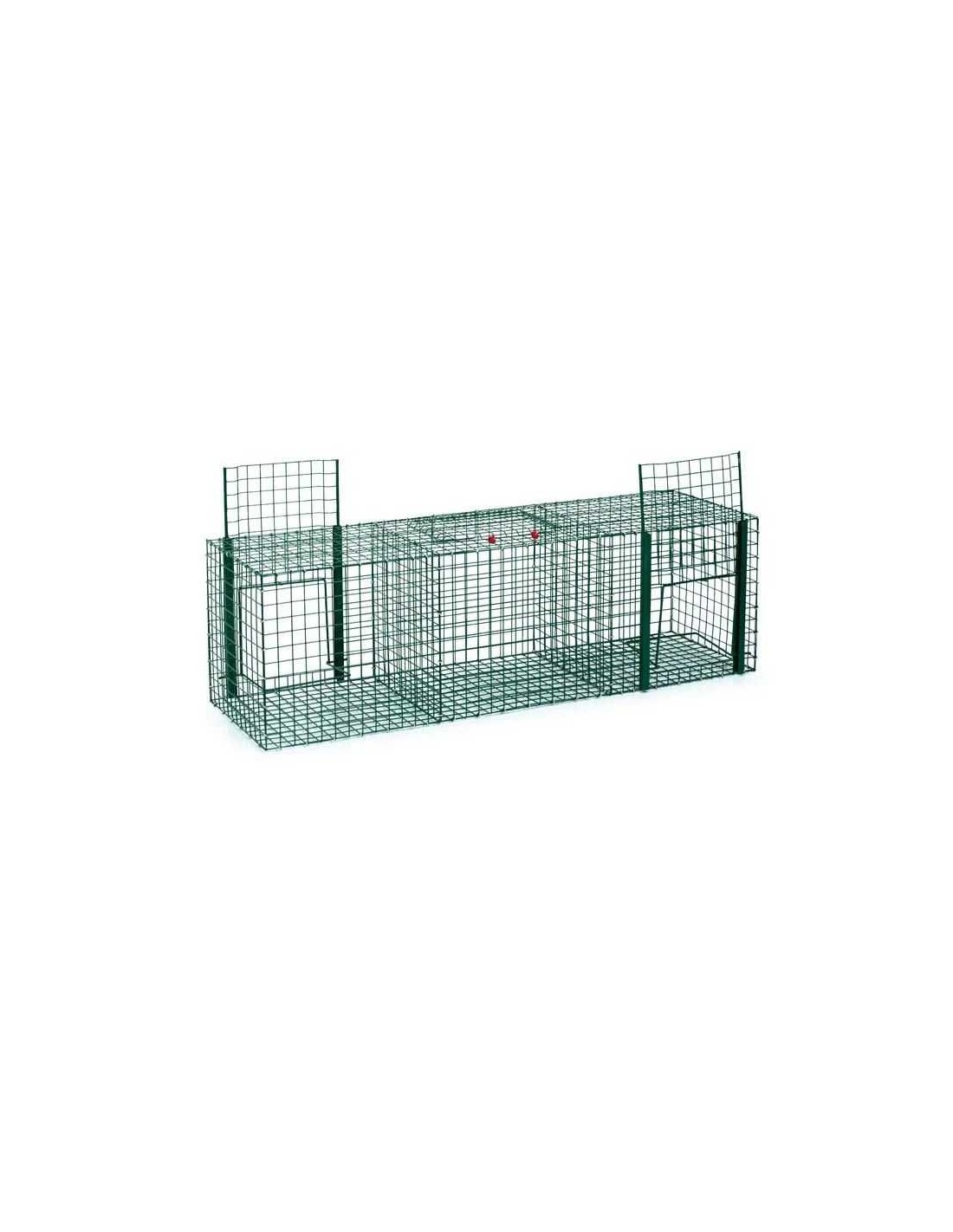 Con tres compartimentos, esta jaula permite una captura eficiente y segura de múltiples aves.