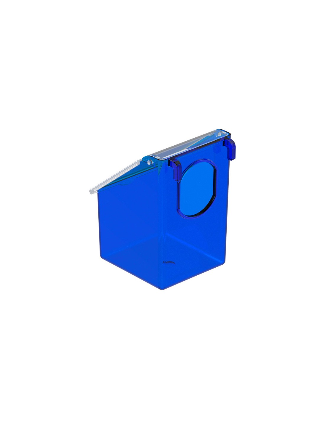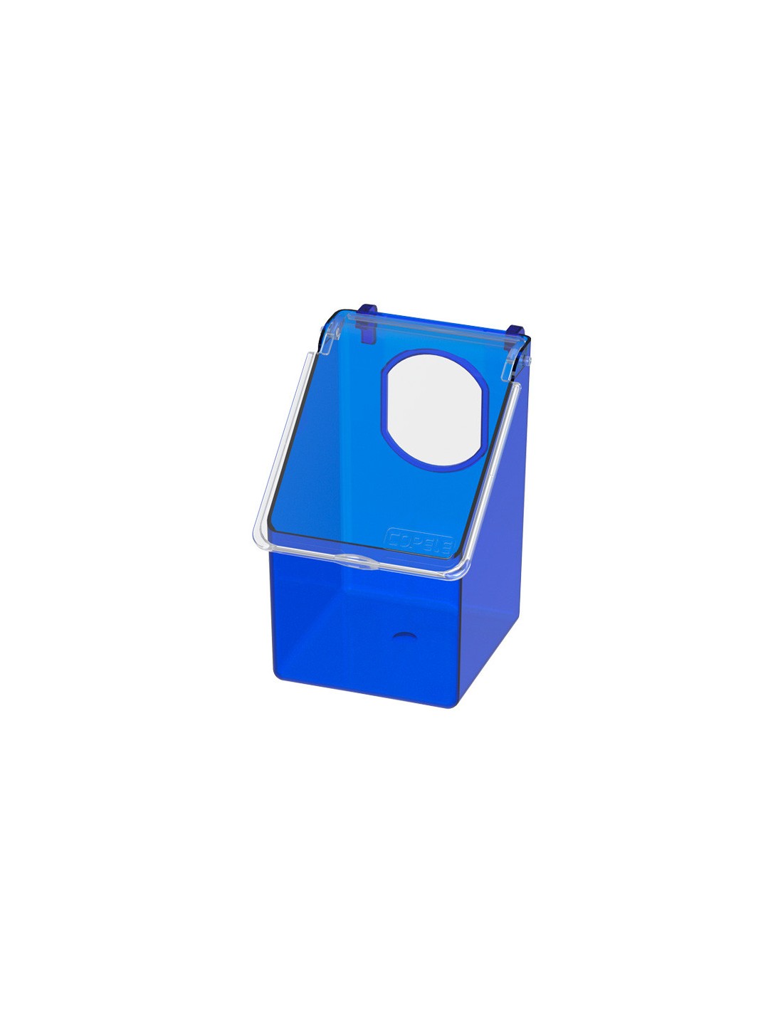 Fabricado en plástico de alta calidad, este comedero cuenta con una tapa transparente que permite una fácil inspección del nivel de alimento.