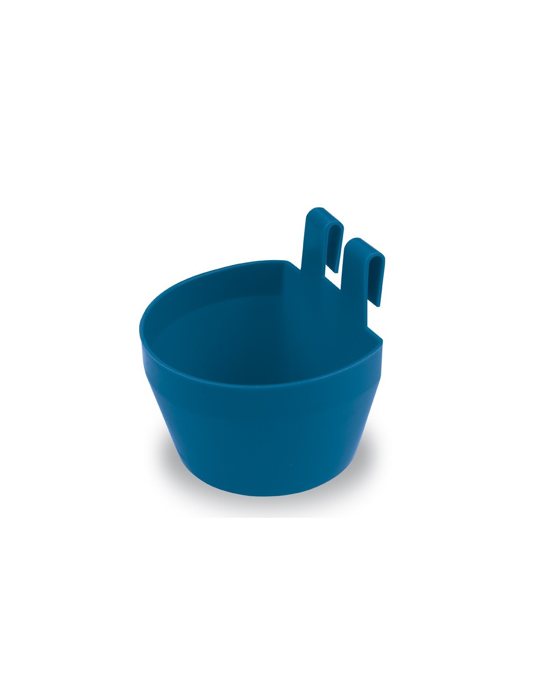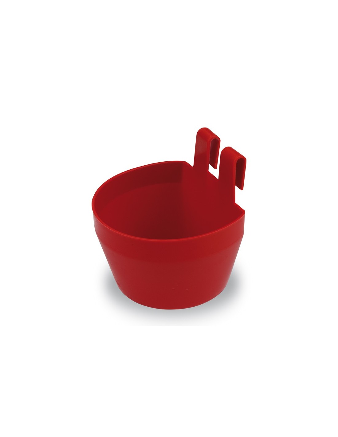Fabricado con plástico de alta calidad, este comedero cuenta con ganchos que permiten su instalación en cualquier jaula o aviario.