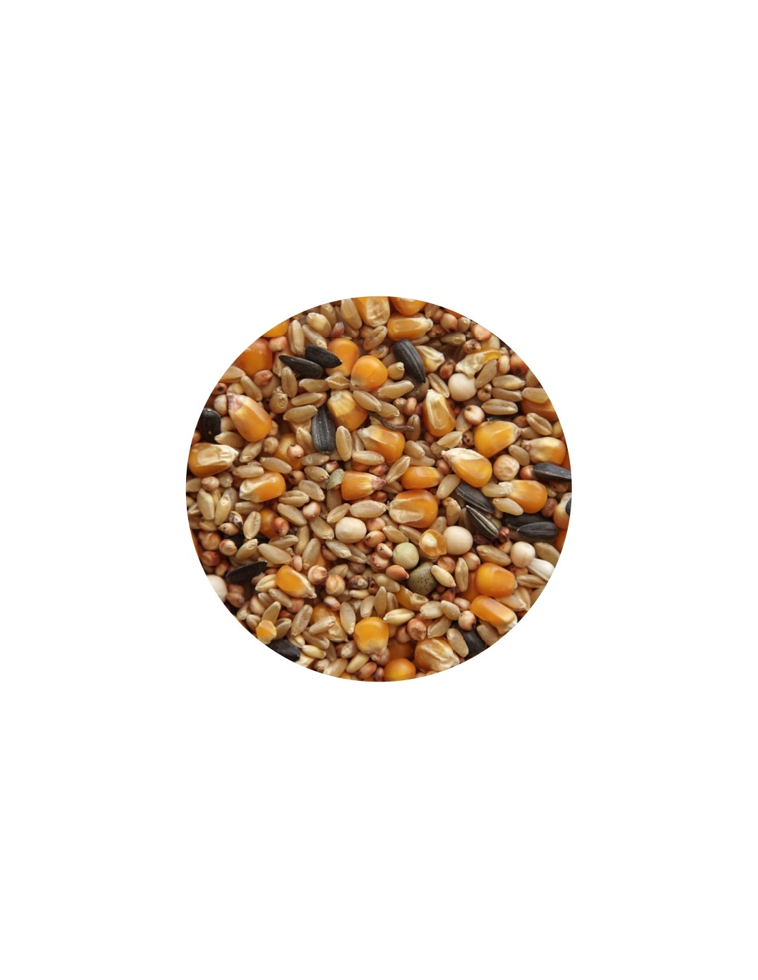Con una presentación de 25 kg, esta mezcla incluye ingredientes de alta calidad como maíz, trigo, sorgo rojo y guisantes, seleccionados cuidadosamente para garantizar una dieta equilibrada.