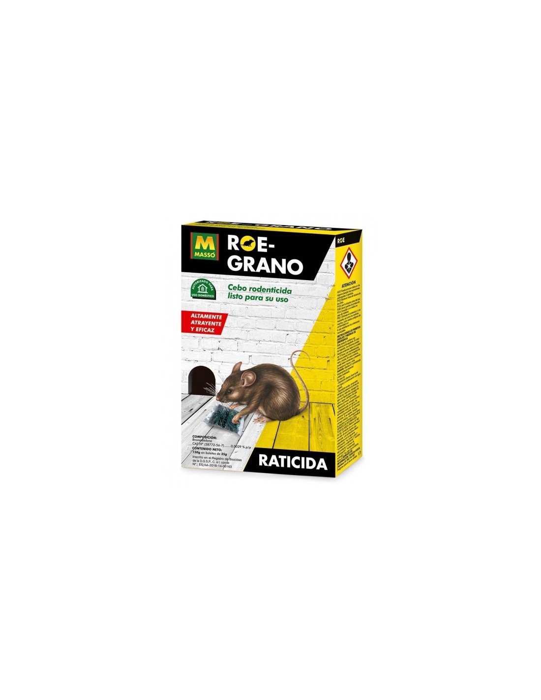 Este raticida en bolsitas de grano de cereal está formulado con bromadiolona, un anticoagulante eficaz contra ratas y ratones.