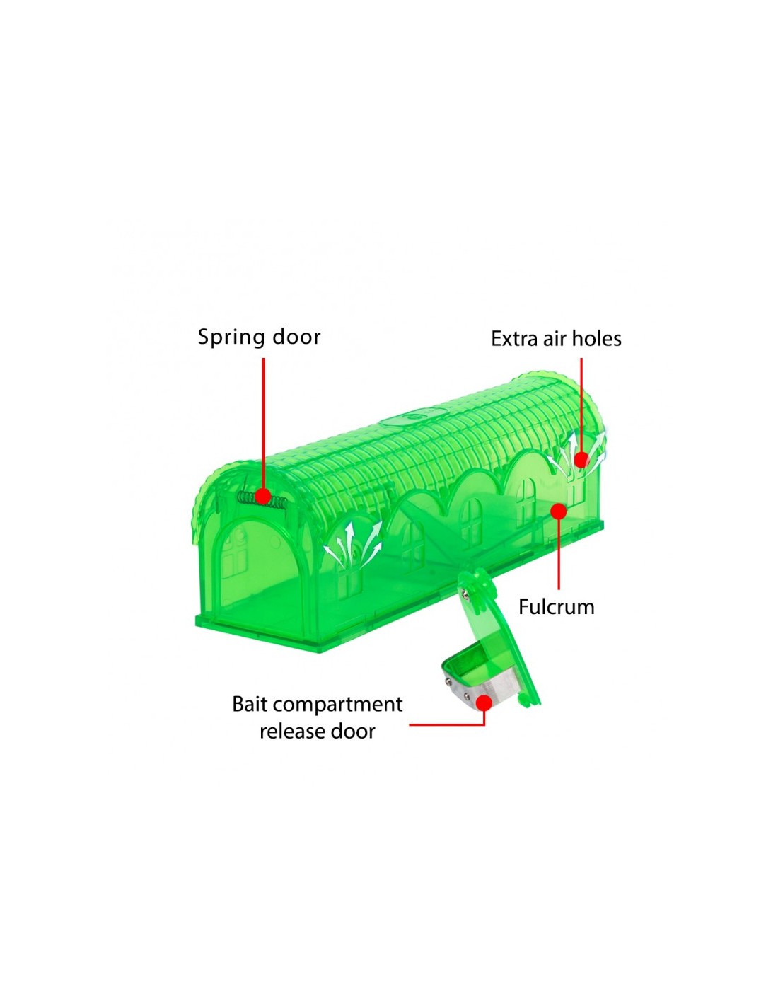 Estas ratoneras están diseñadas con un mecanismo de cierre rápido y seguro que garantiza la captura inmediata de los roedores.