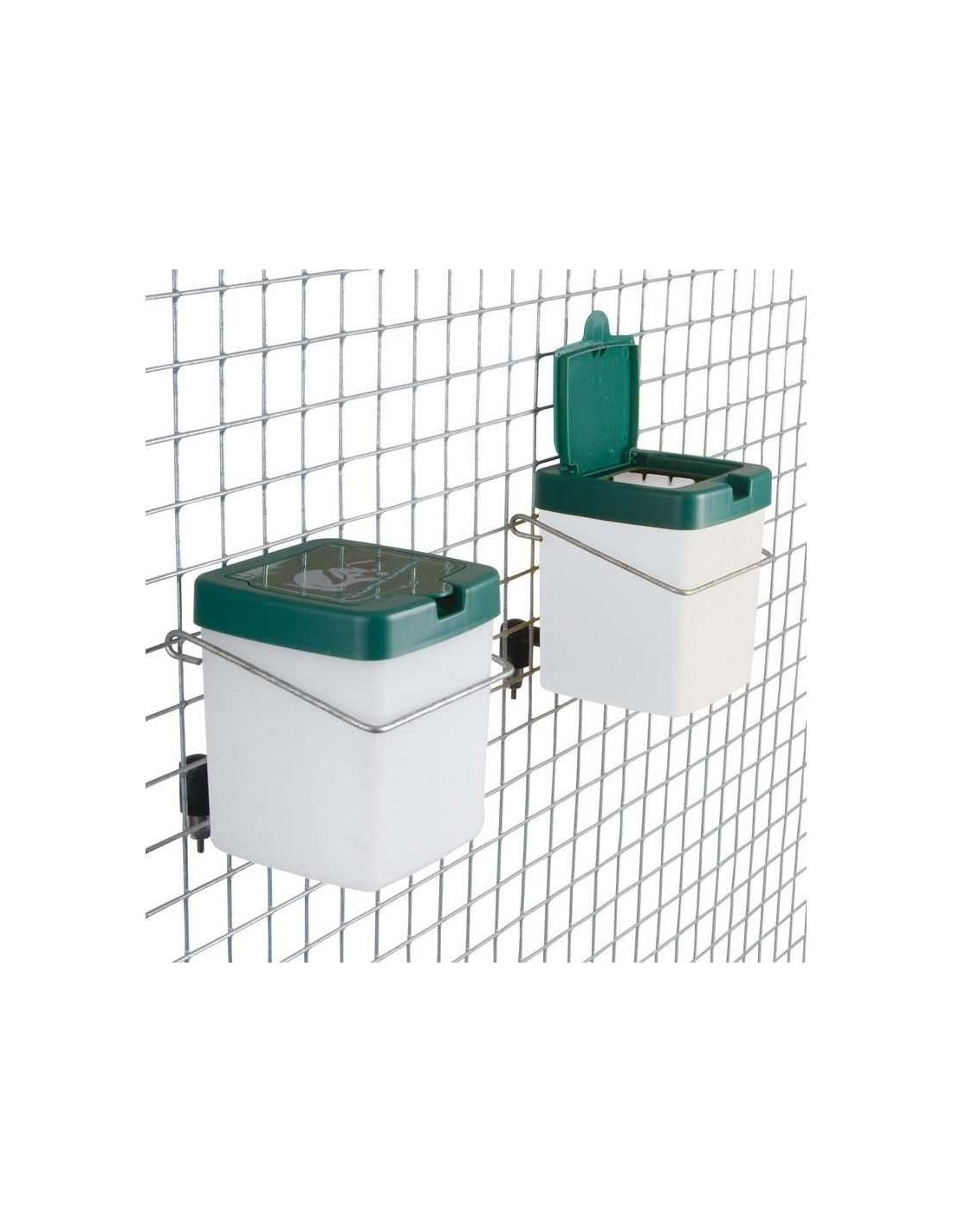 Su diseño incluye una botella de plástico translucido que permite observar el nivel del agua, y una abrazadera de alambre para una instalación sencilla en cualquier jaula.