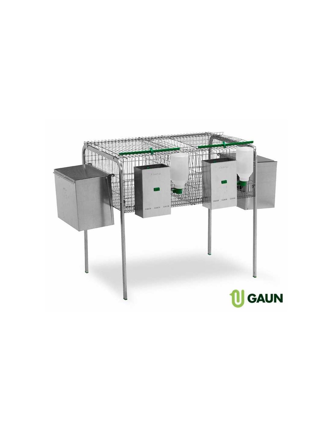 Las tolvas metálicas de dos huecos facilitan la limpieza, mientras que los bebederos automáticos con botella garantizan que los conejos siempre tengan acceso a agua fresca.