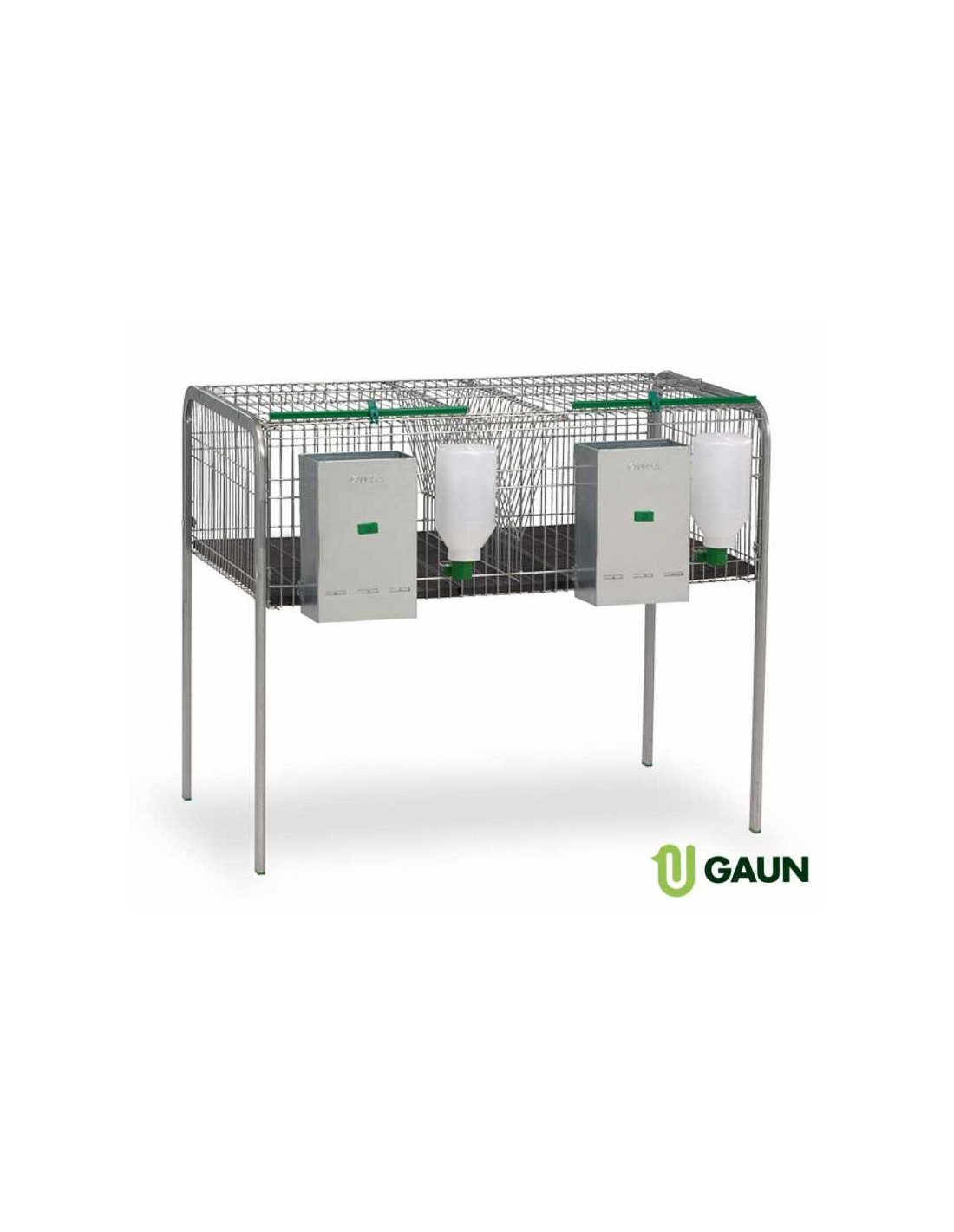 Las tolvas metálicas de dos huecos facilitan la limpieza, mientras que los bebederos automáticos con botella garantizan que los conejos siempre tengan acceso a agua fresca.