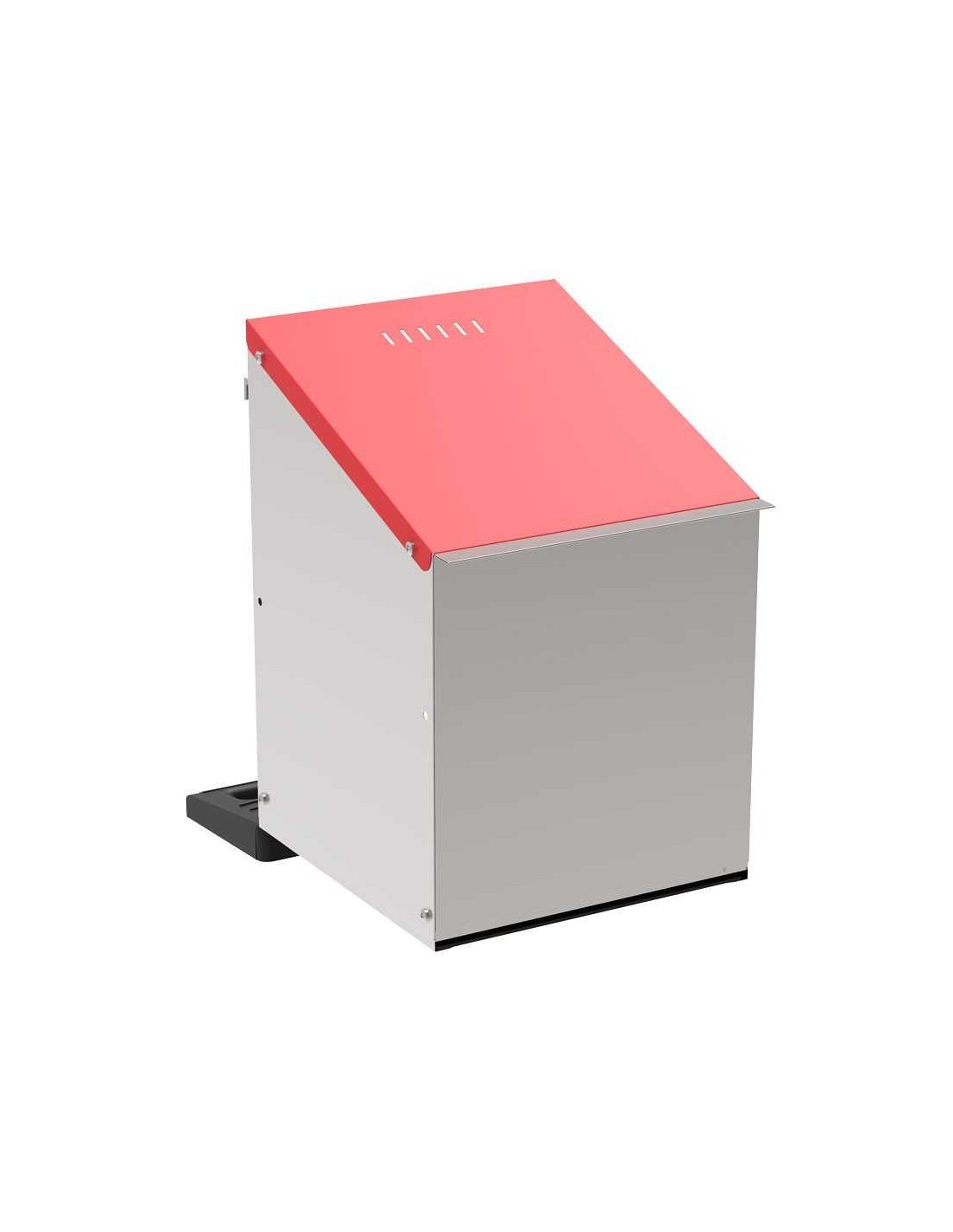 Fabricado con chapa galvanizada, este nido cuenta con un único departamento que permite extraer la bandeja desde el exterior del gallinero.