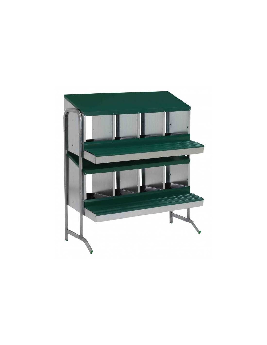 Este ponedero cuenta con ocho compartimentos independientes, cada uno equipado con una cubeta extraíble que facilita la limpieza y el mantenimiento.