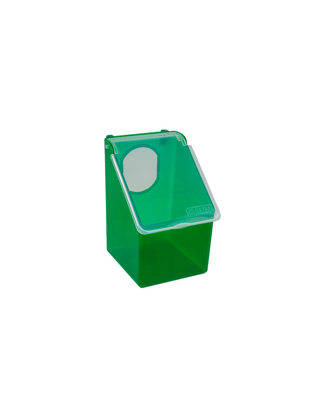 La tapa transparente permite ver la cantidad de alimento disponible, facilitando el control del suministro.