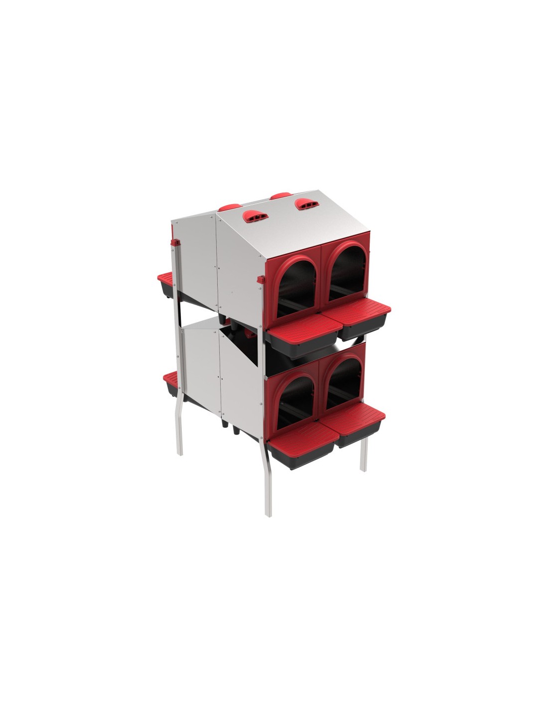Este ponedero de dos niveles con ocho departamentos ofrece un espacio cómodo para que las gallinas pongan sus huevos.