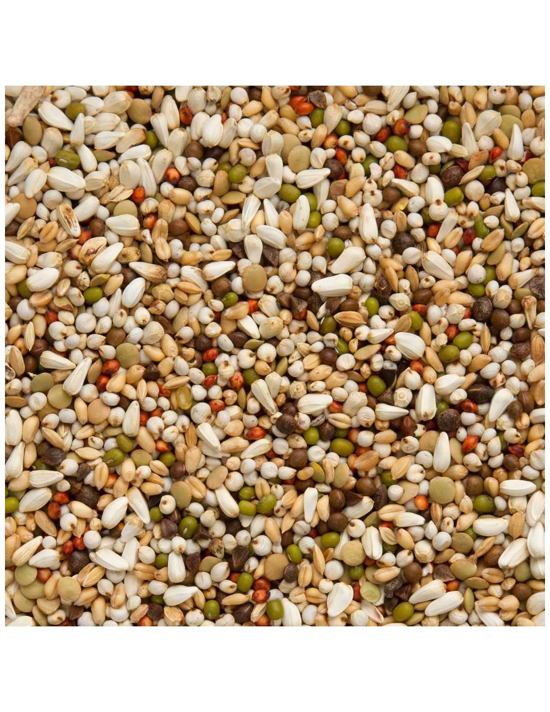 Esta mezcla contiene una combinación de ingredientes seleccionados como dari blanco, trigo blanco, cártama, cebada pelada, frijol mungo, alforfón, sorgo rojo extra y avena pelada.