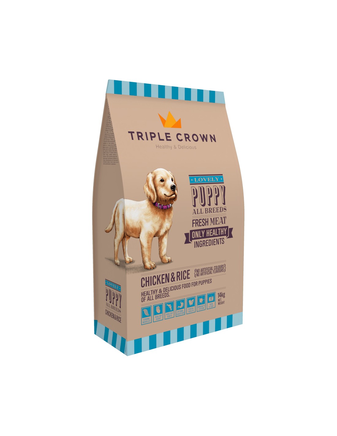 Con TRIPLE CROWN Lovely Puppy, puedes estar seguro de que tu cachorro recibirá una nutrición completa que respalda su desarrollo muscular, óseo y digestivo, permitiéndole crecer fuerte y saludable.