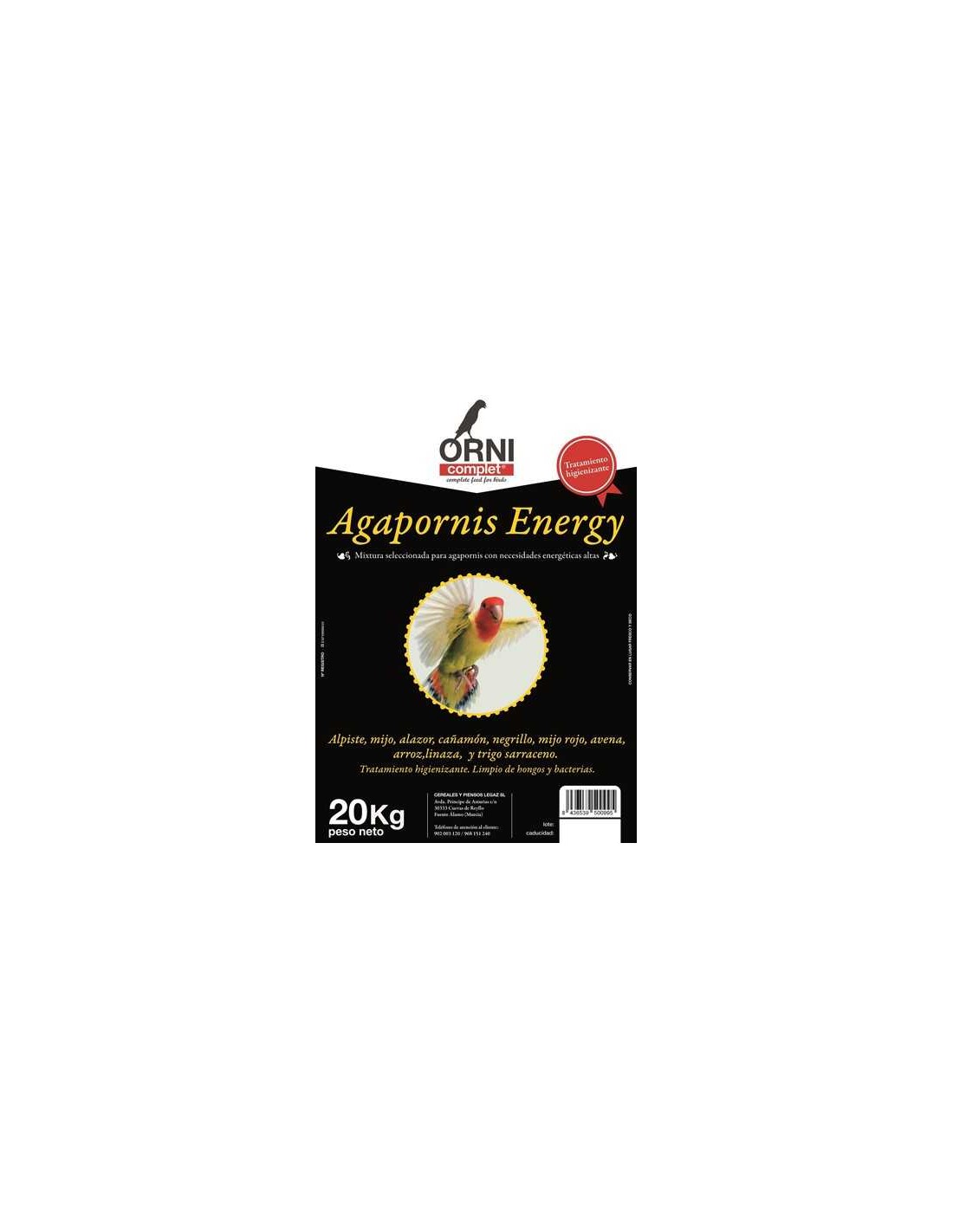 ORNI COMPLET AGAPORNIS ENERGY - 20 KG: Este mix está diseñado para proporcionar una alimentación completa y una vitalidad óptima para los agapornis y otras pequeñas psitácidas.
