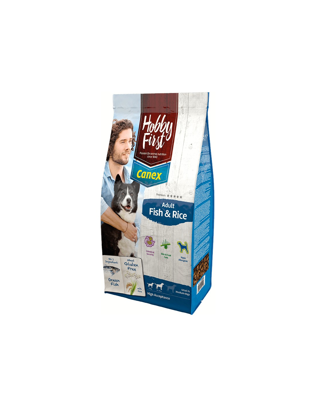 El HobbyFirst Canex Adult Fish - Rice - 3 KG es una dieta completa y equilibrada diseñada específicamente para perros adultos de todas las razas.