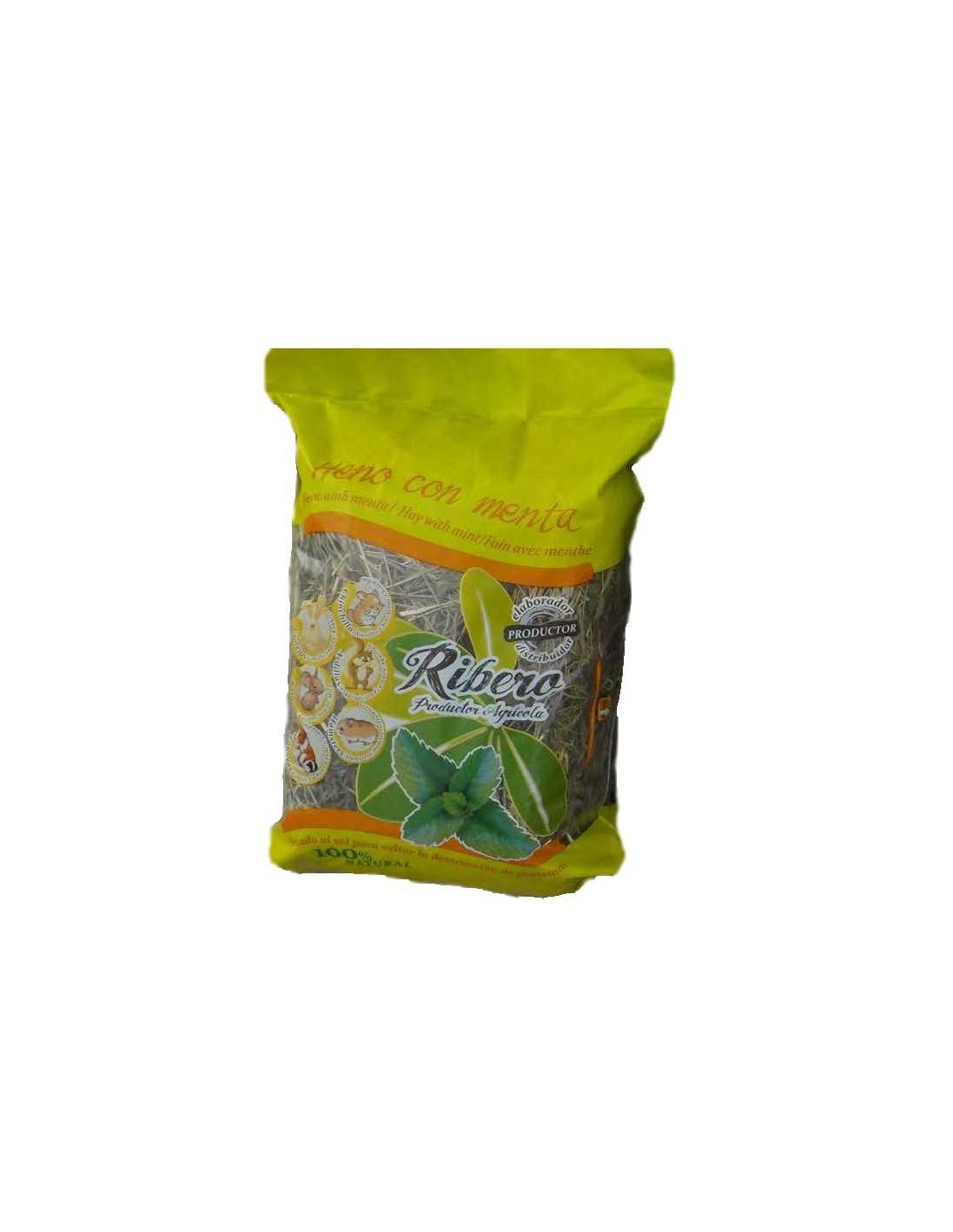 Dale a tus pequeños amigos peludos un capricho saludable con el HENO CON MENTA RIBERO - 500 GR.