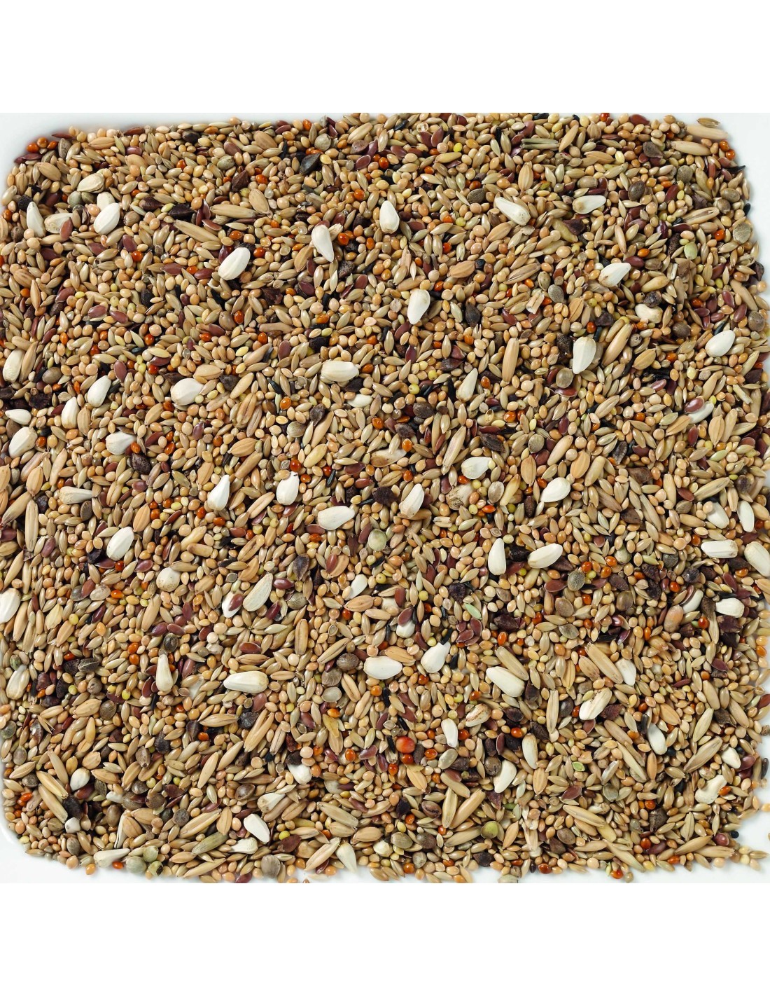Esta mezcla de semillas sin pipas incluye alpiste, mijo blanco, mijo rojo, avena pelada y cañamón, diseñada para satisfacer todas las necesidades nutricionales de agapornis, ninfas y cotorras.