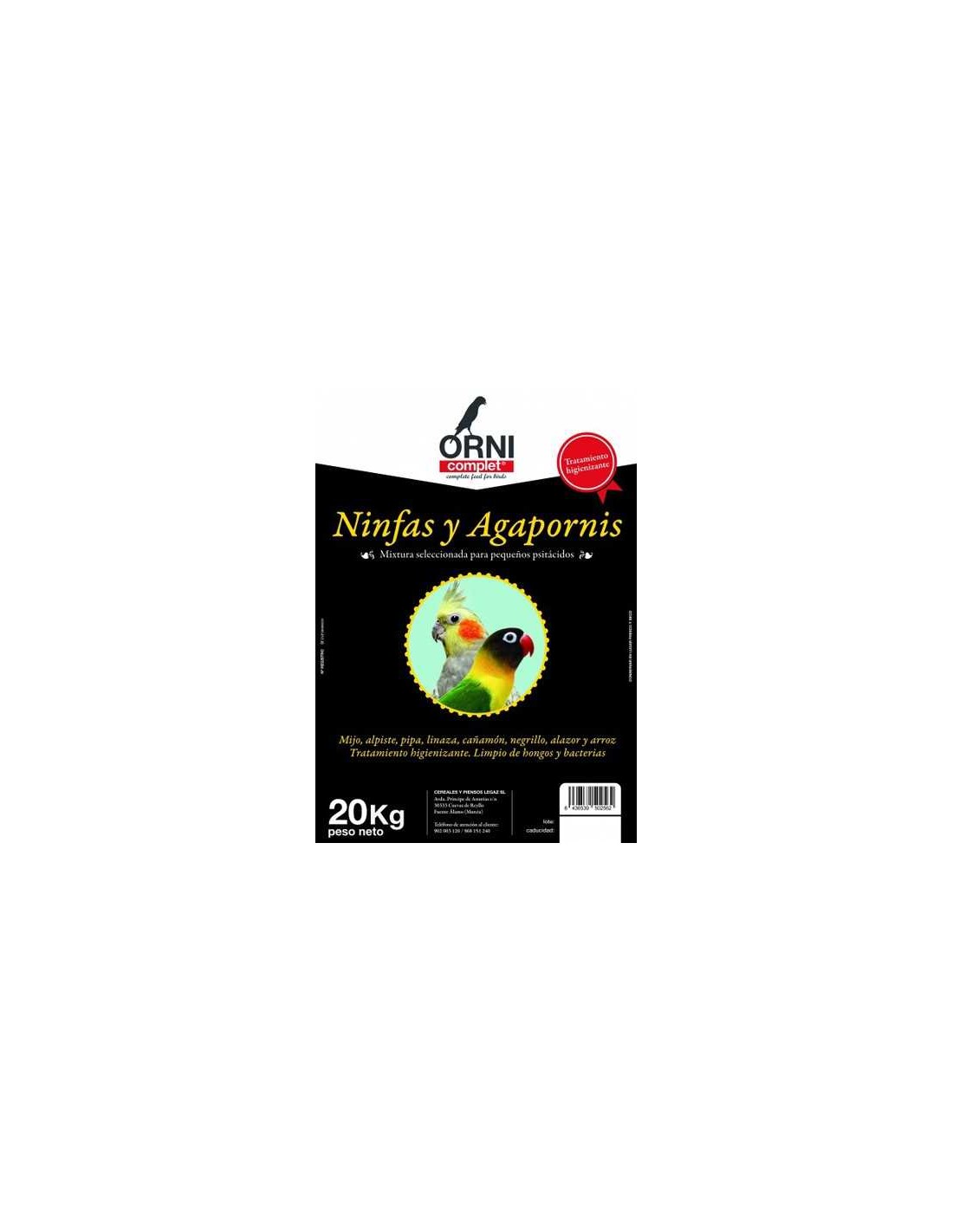 Mix Nutritivo para Agapornis y Ninfas ORNI COMPLET: Este mix está formulado específicamente para cubrir las necesidades dietéticas de los agapornis y las ninfas.