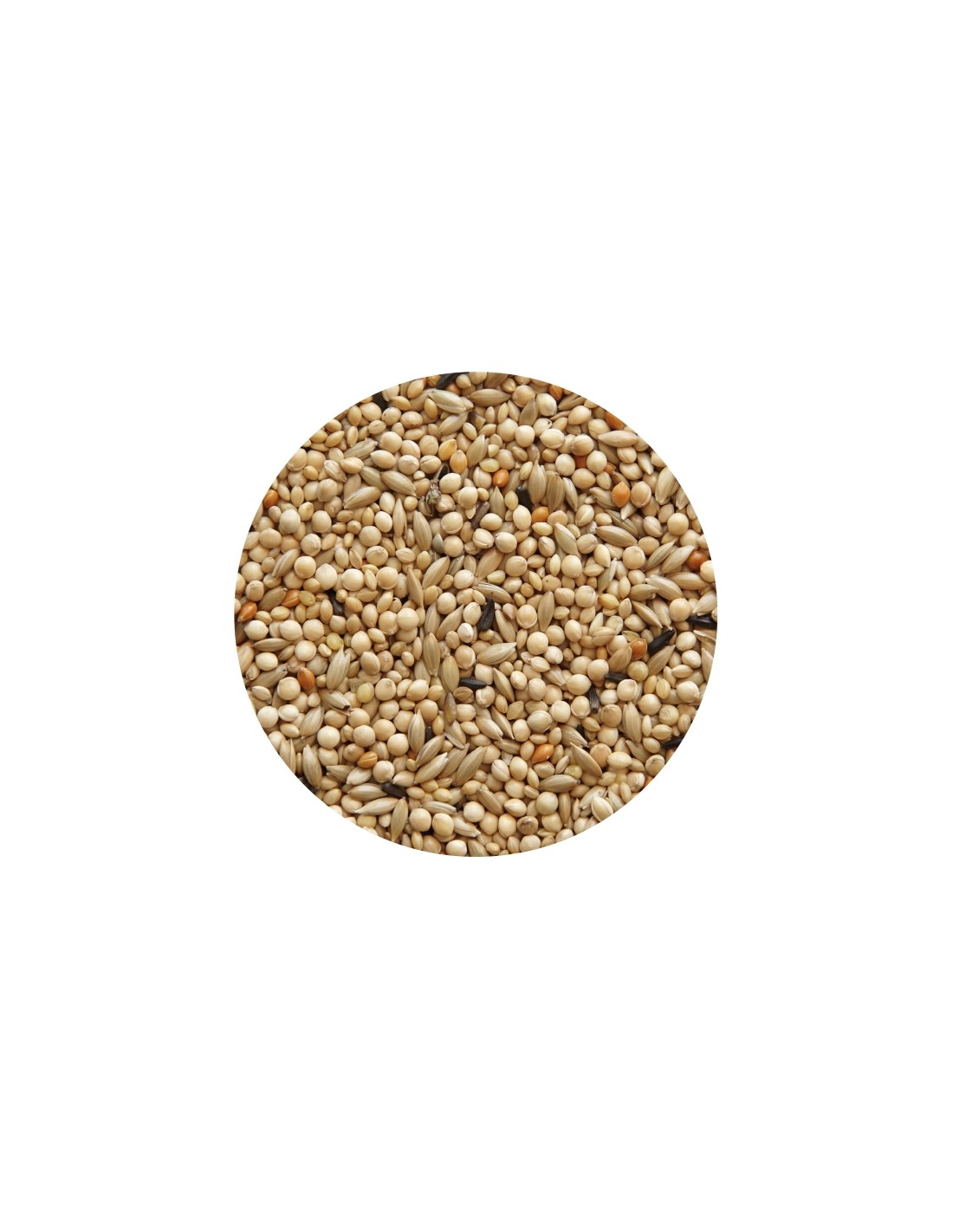 Esta fórmula incluye una variedad de ingredientes naturales y nutritivos como mijo blanco, panizo amarillo, mijo rojo, avena pelada, alpiste, maíz, semilla de linaza amarilla, linaza, semillas de Plantago, negrillo, alfalfa, jugo de raíz de remolacha, aceite de girasol y cúrcuma.