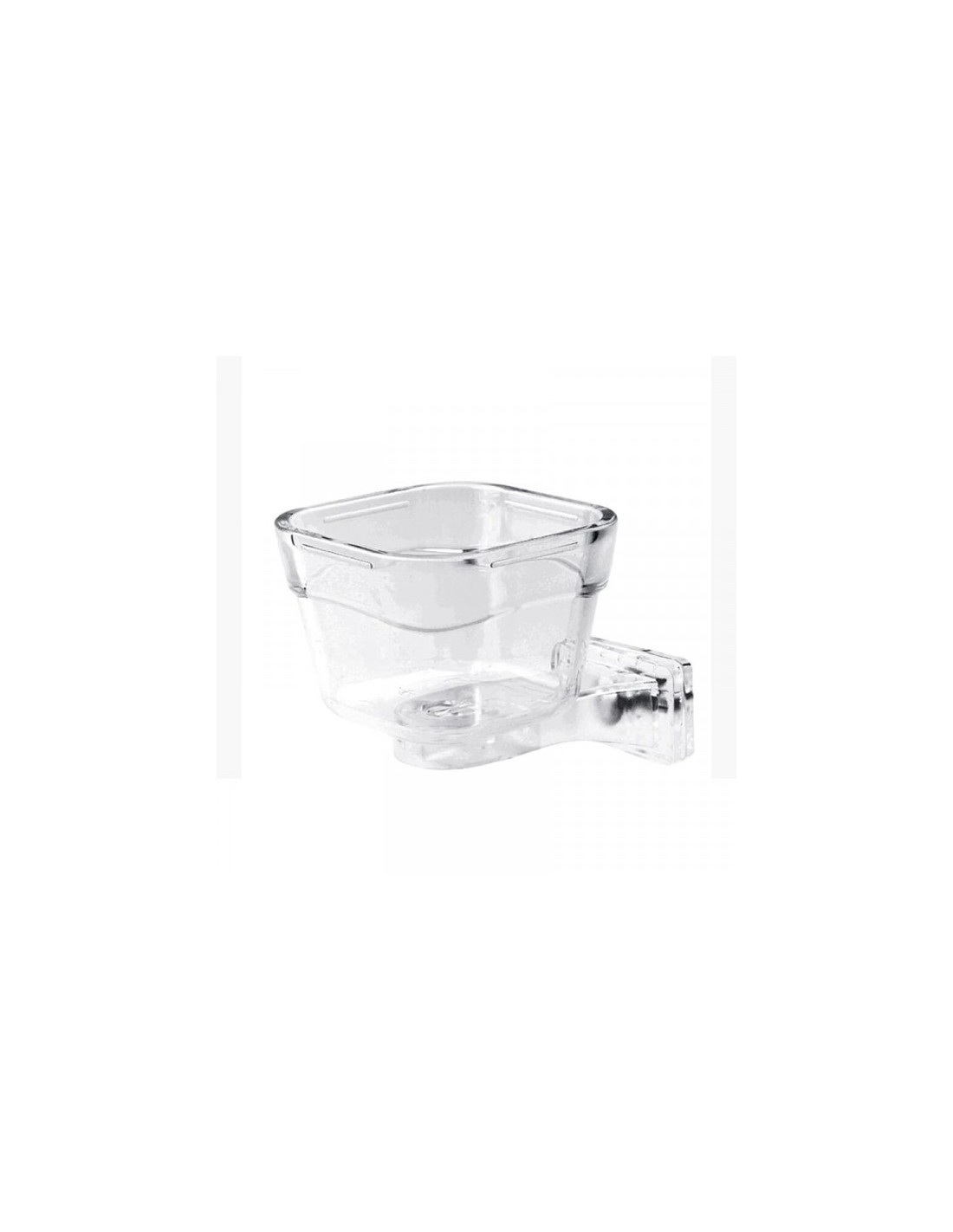 Fabricado con plástico resistente y translúcido, este comedero tiene unas dimensiones de 9 x 9 x 6.5 cm, ideal para jaulas o acuarios.