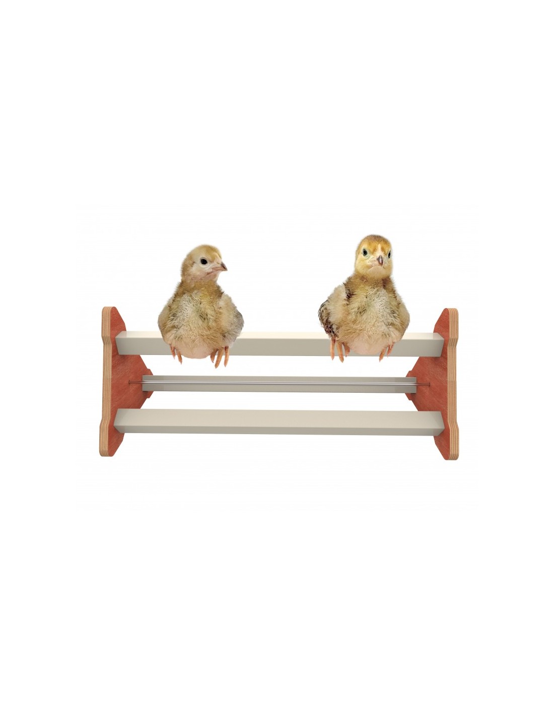 Fabricado con materiales duraderos y resistentes, este aseladero proporciona un espacio cómodo y seguro para que los pollitos puedan descansar y mantenerse alejados del suelo.