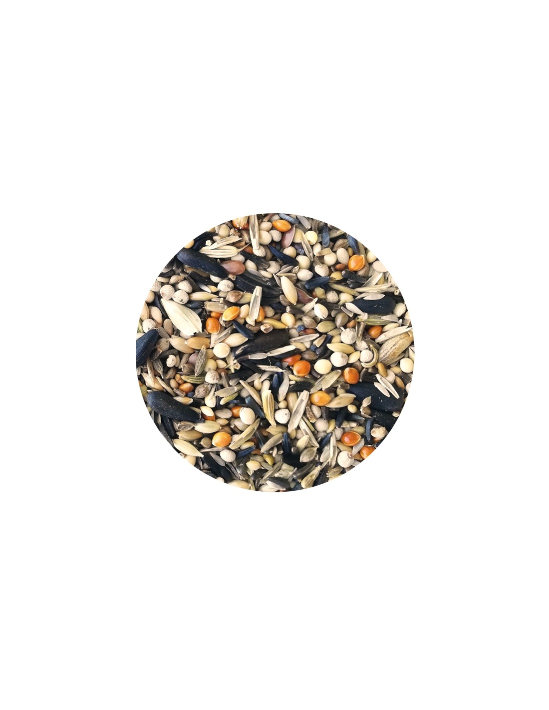 Esta mezcla está compuesta de ingredientes de alta calidad como perilla blanca, negrillo, graminias, alpiste limpio, mijo blanco, mijo japonés, panizo, linaza, hinojo, cardo mariano, pipa de girasol pelada, lechuga, sésamo, amapola y pipa micro.