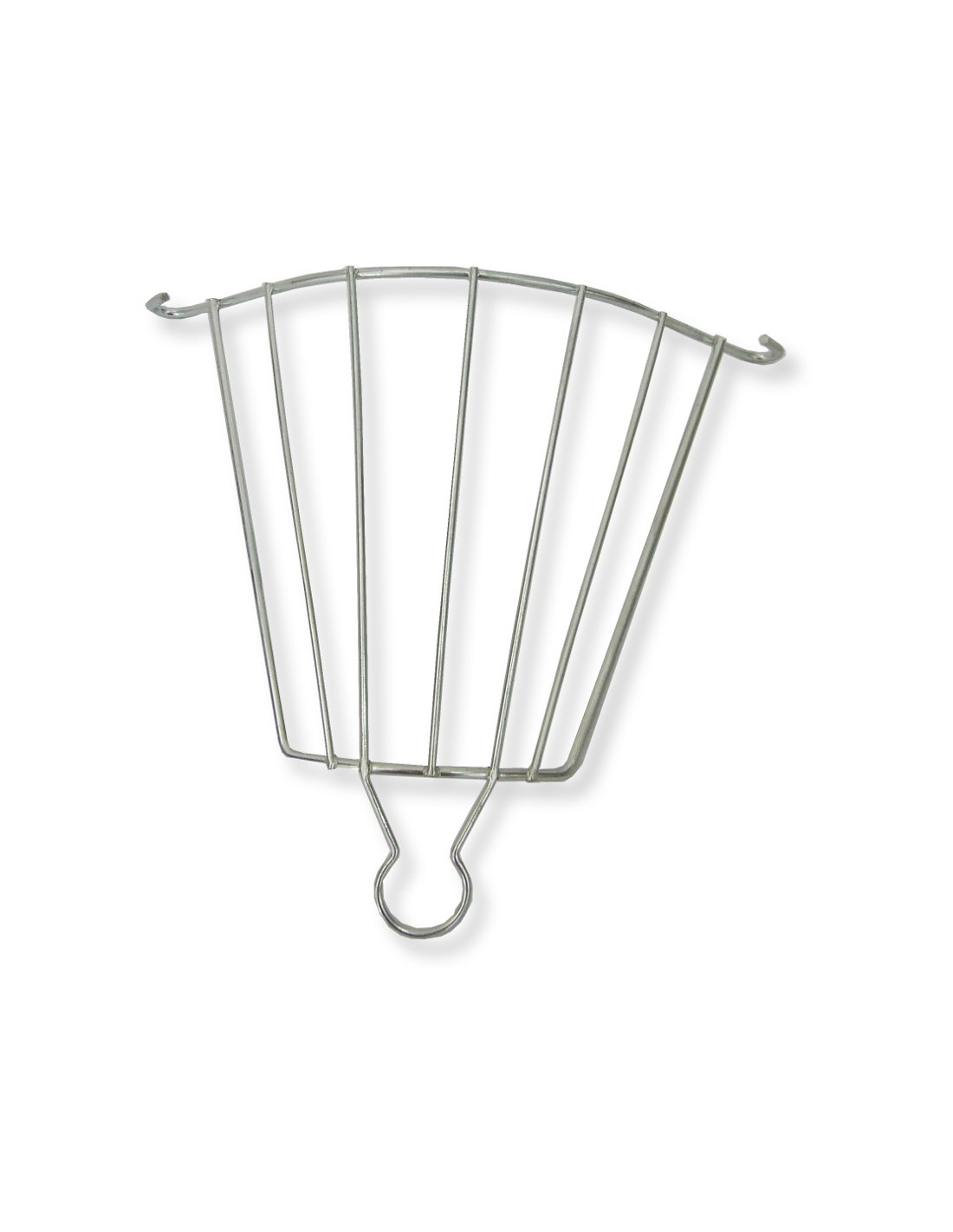 Fabricado con metal resistente, este porta fibra está diseñado para colgar verduras, frutas y fibras dentro de jaulas y aviarios, evitando que los alimentos caigan al suelo y se contaminen.