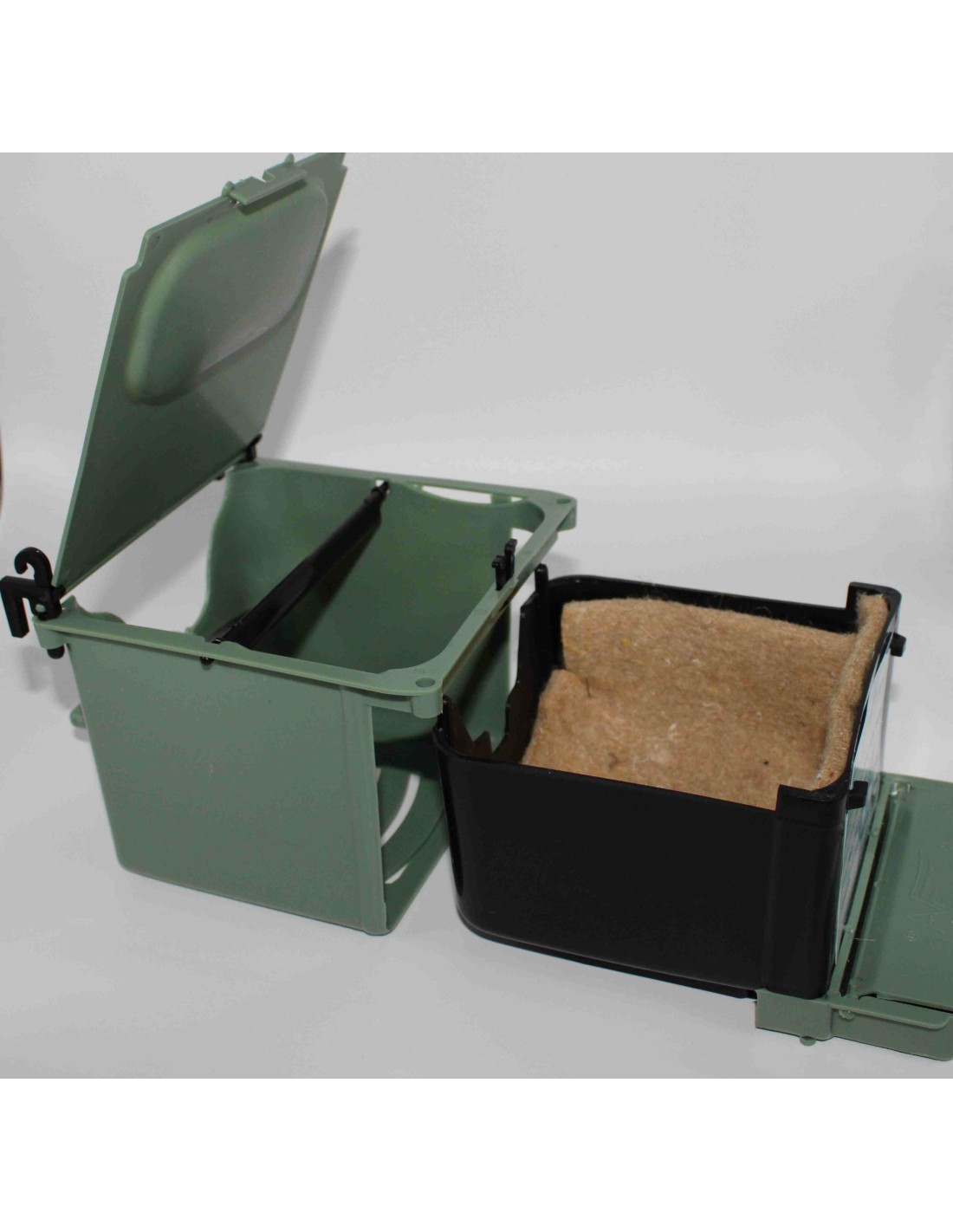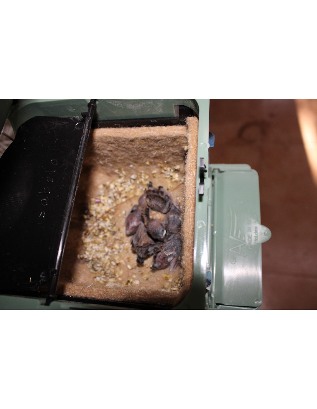 Incluye hueco para apartar huevos, tarjeta de cría por las ambas caras y 1 forro de yute.