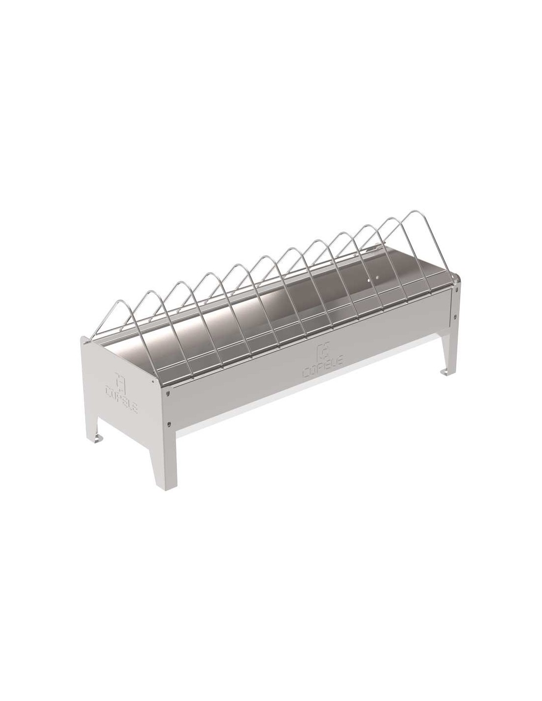 Fabricado en chapa galvanizada resistente, cuenta con patas y soportes para facilitar el acceso al pienso.