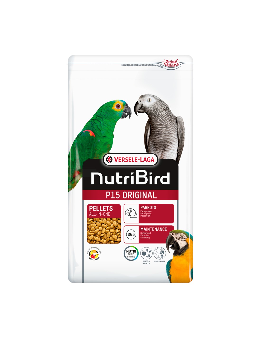 El Nutribird Loros P15 Original de Versele Laga es un alimento de mantenimiento completo y equilibrado para loros, que combina cereales seleccionados, frutas y cacahuetes.