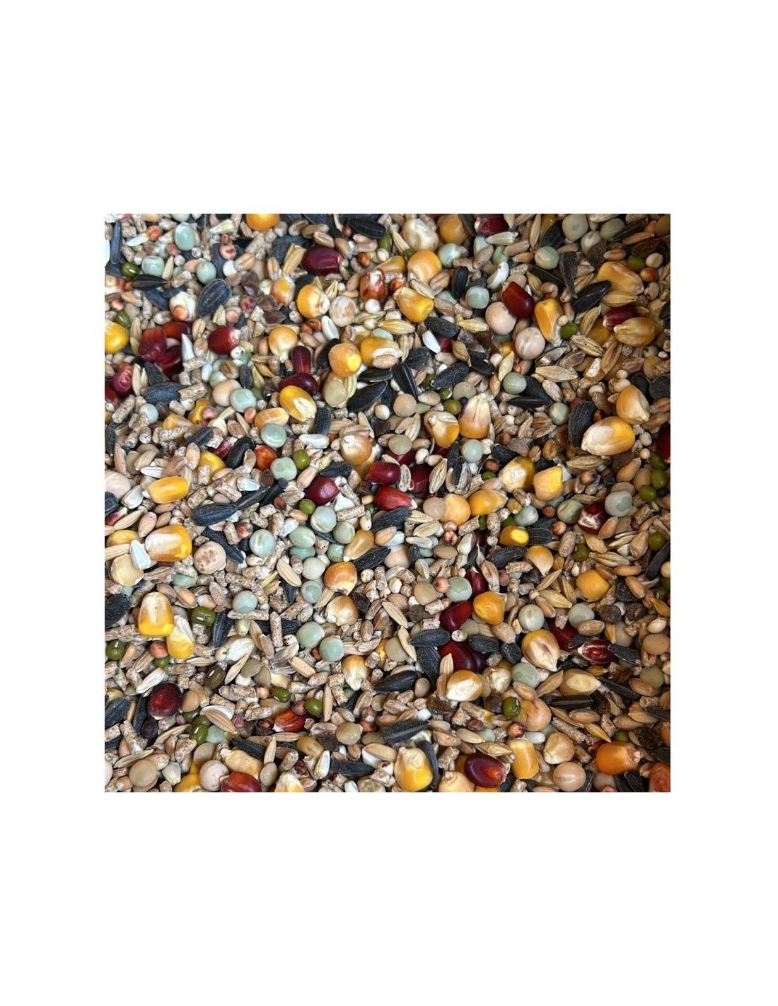 Esta mezcla combina granos seleccionados, semillas oleaginosas y legumbres, proporcionando una dieta rica en nutrientes esenciales.