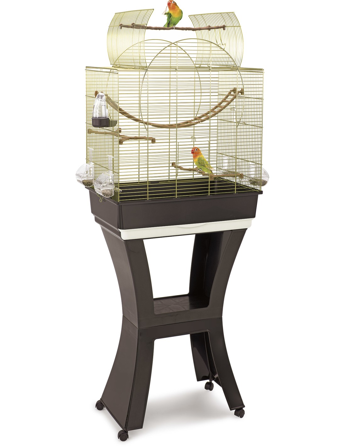 Esta jaula presenta un diseño dorado sofisticado que realza cualquier espacio en tu hogar.