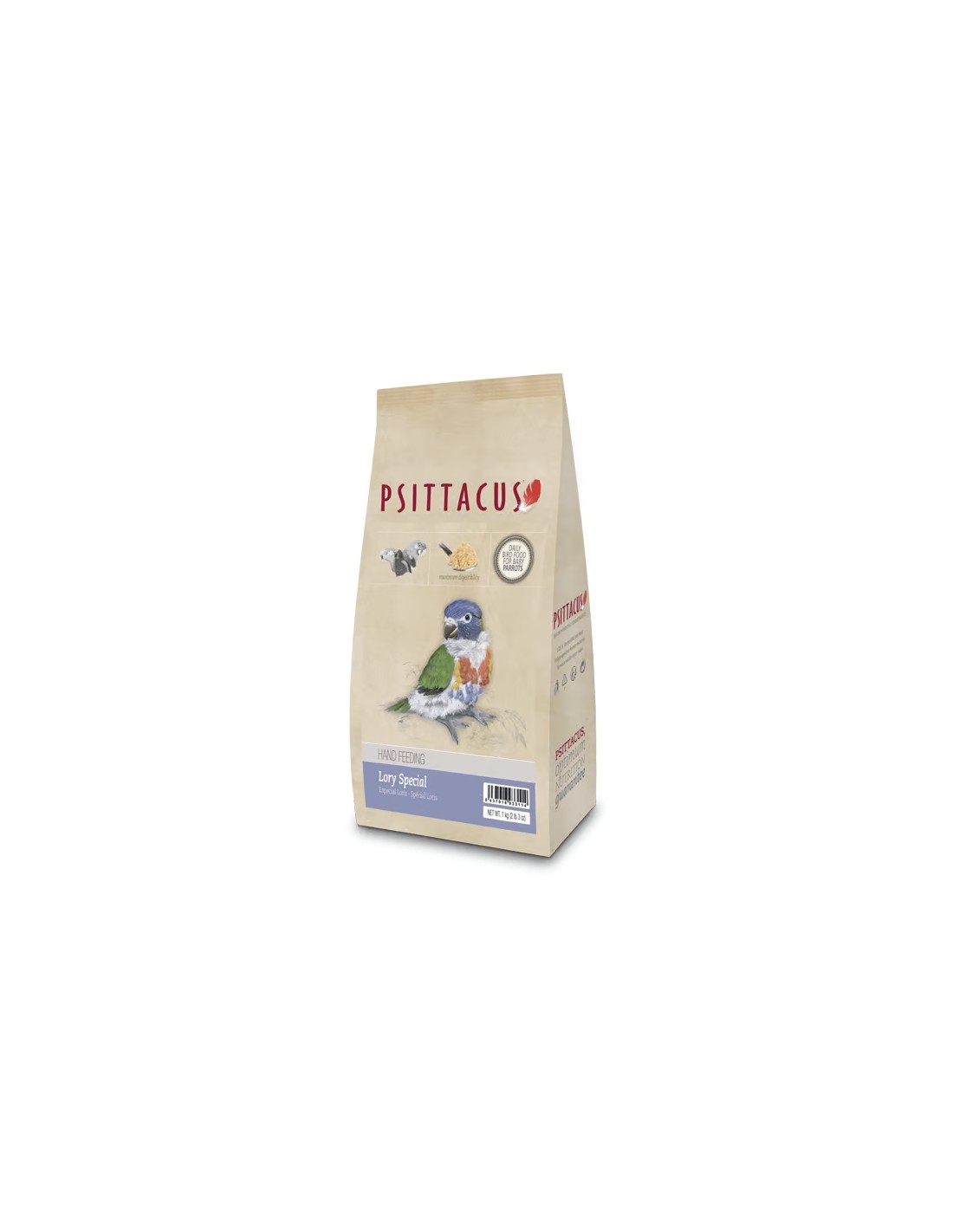 El Psittacus Papilla Especial Lory es una papilla de continuación formulada específicamente para criar manualmente polluelos de loros Loriini.