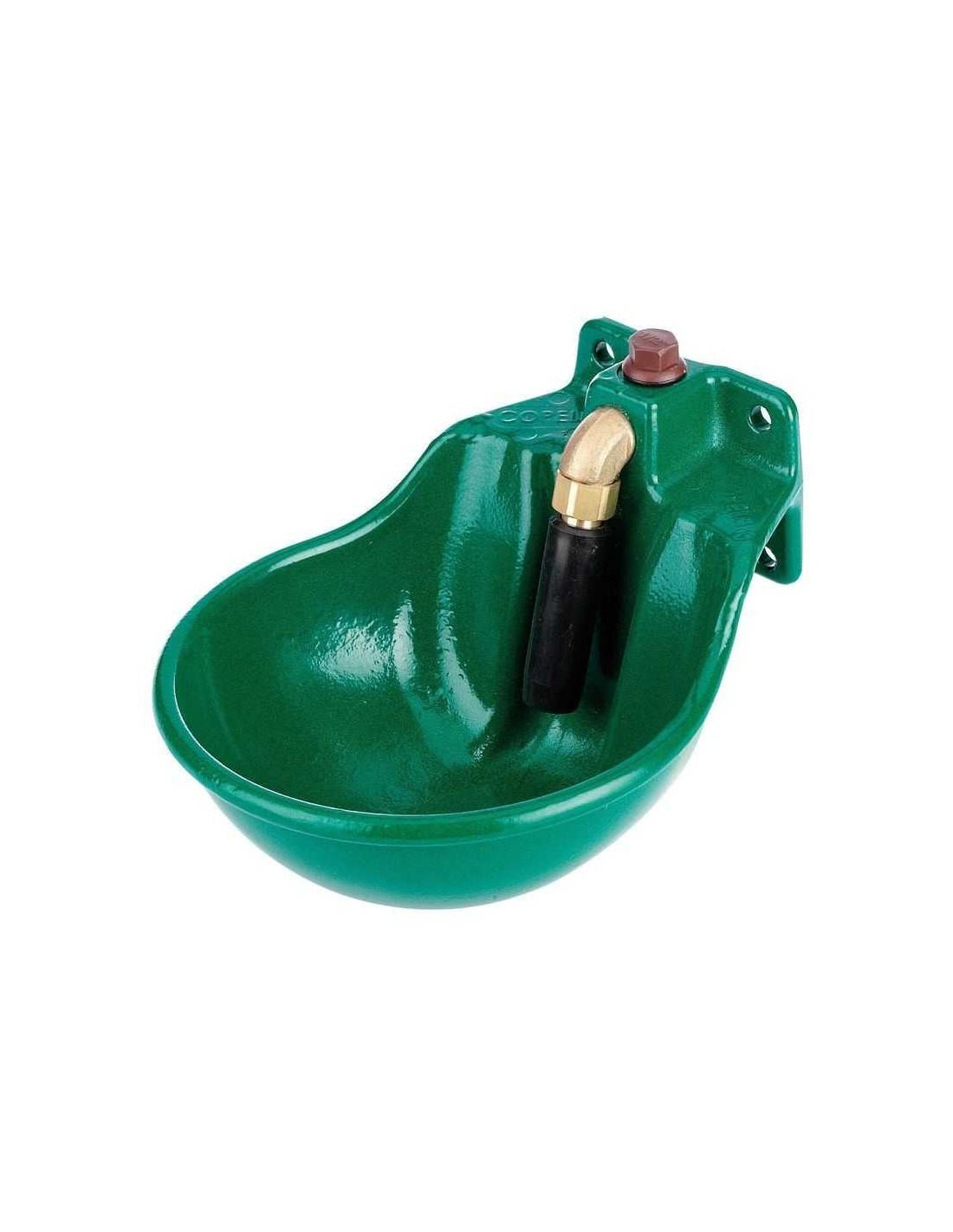 Bebedero para caballos Copele fabricado en aluminio pintado en color verde.
