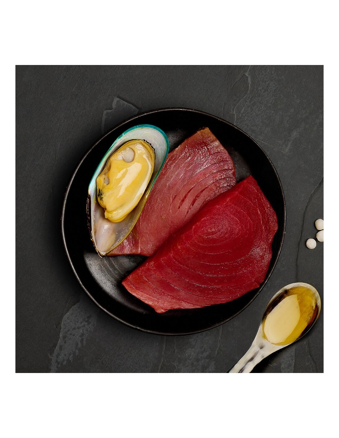 El atún y los mejillones son excelentes fuentes de proteínas y ácidos grasos omega-3, que apoyan la salud del corazón y el pelaje.