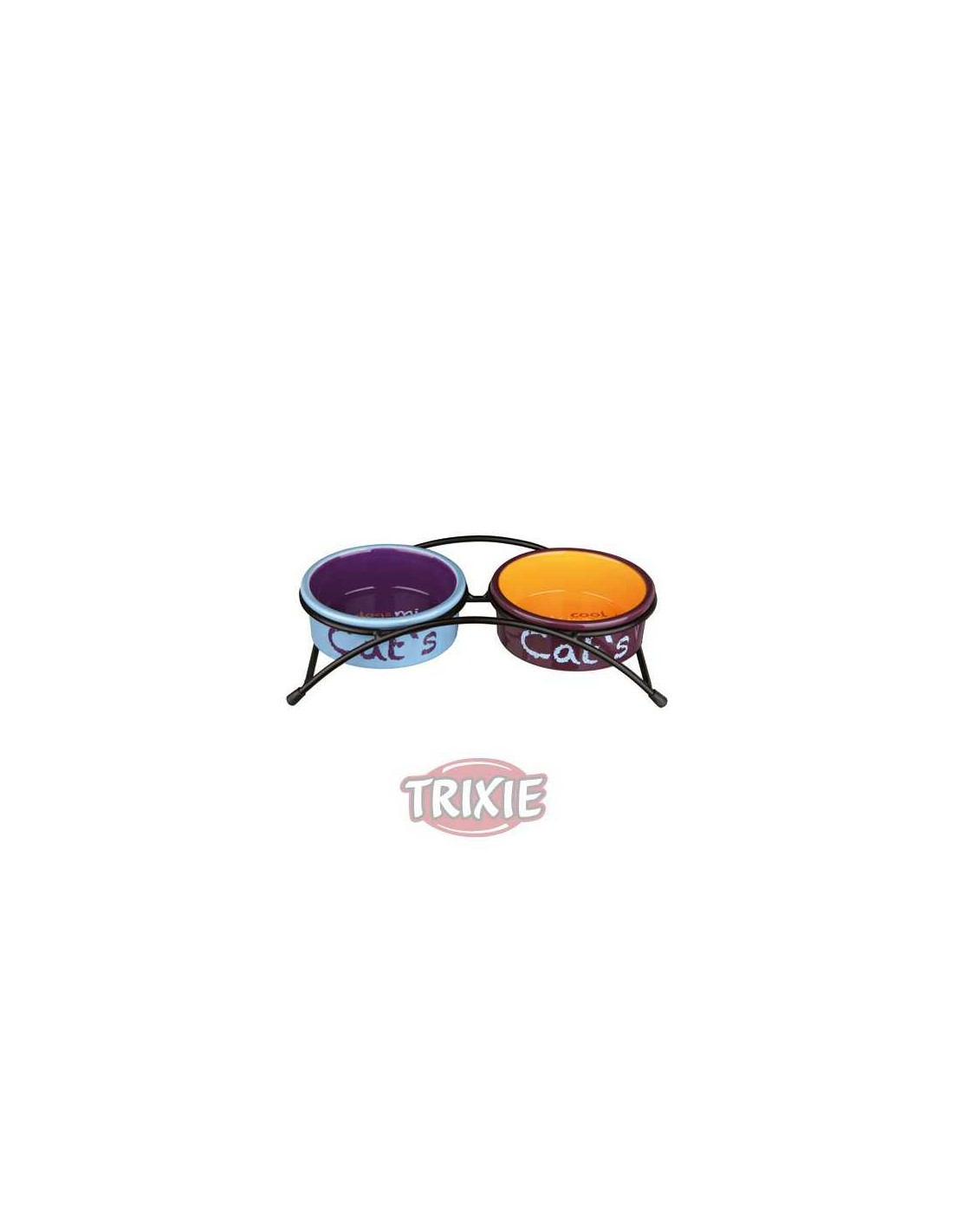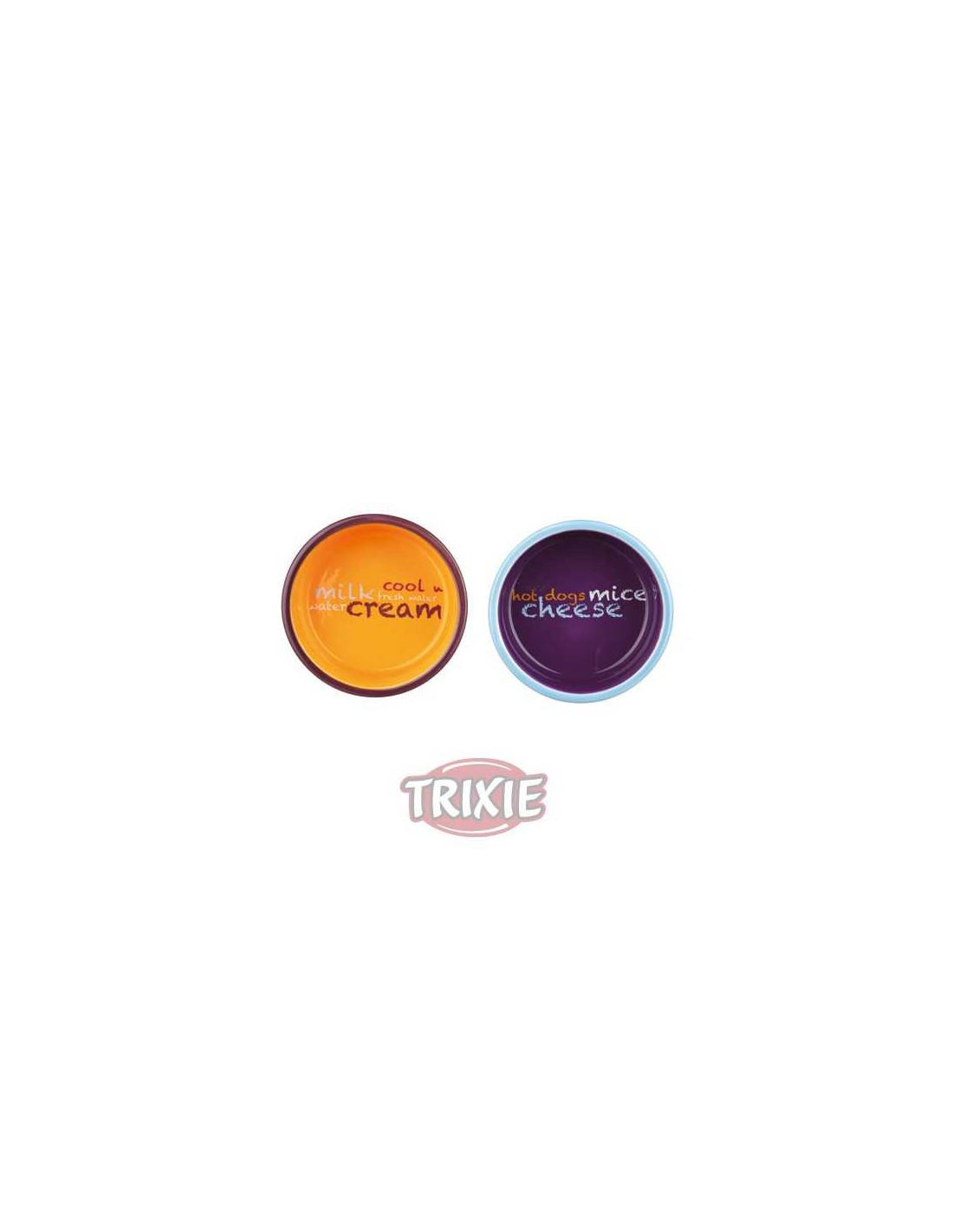 Set Comederos Cerámica Impresos Cats Trixie - Azul / Naranja / Púrpura