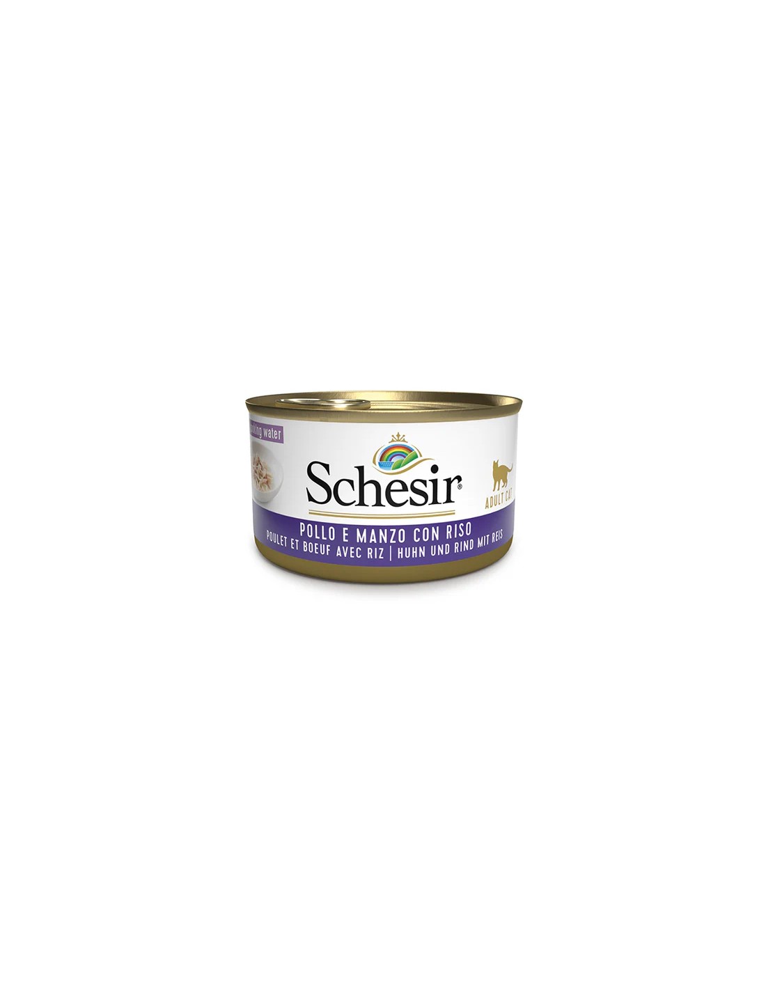 Pollo Con Buey Y Arroz En Agua De Cocción Para Gatos 85 Gr (14 Unidades) Schesir - 14 X 85 Gr