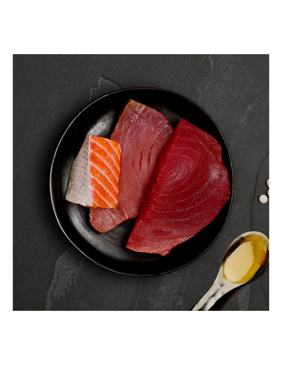 Este alimento húmedo combina la frescura del atún y el salmón, proporcionando una fuente excelente de proteínas de alta calidad y ácidos grasos omega-3.