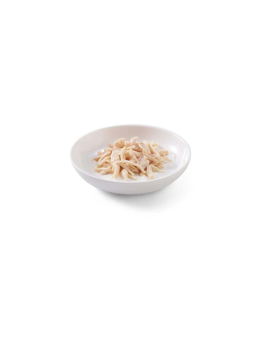 Este alimento húmedo combina filetes de pollo de alta calidad, cocidos al vapor y conservados en una gelatina suave que realza su sabor natural y retiene todos los nutrientes.