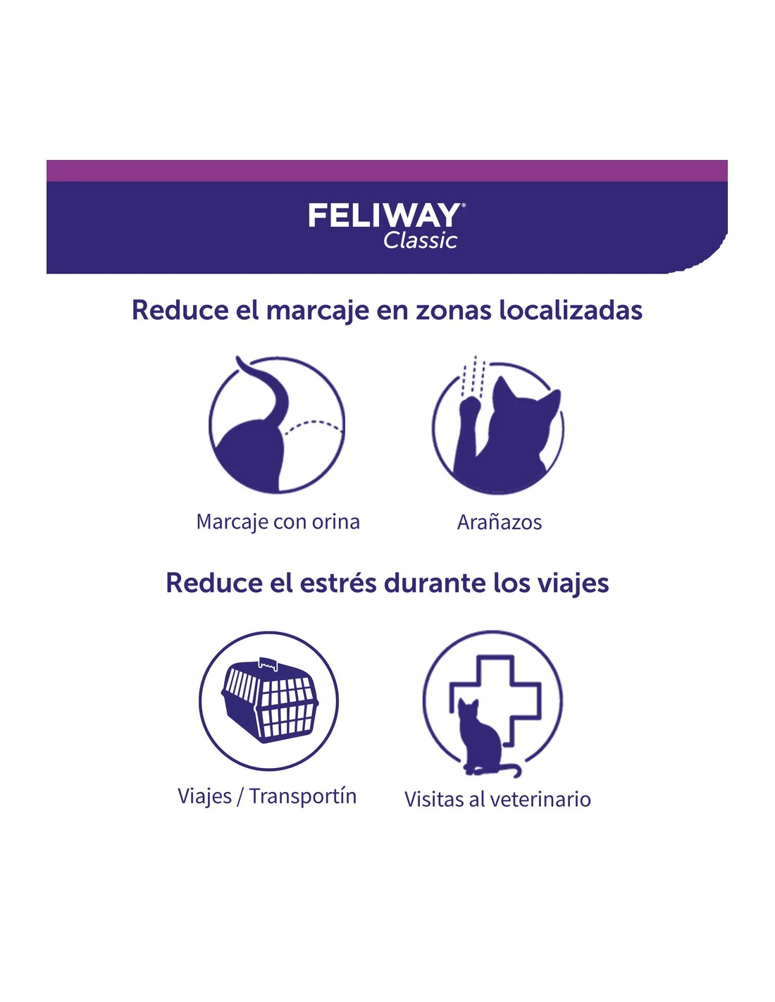 Este spray es ideal para usar en transportines durante viajes, en visitas al veterinario o en el hogar para prevenir comportamientos como el marcaje urinario y los arañazos.