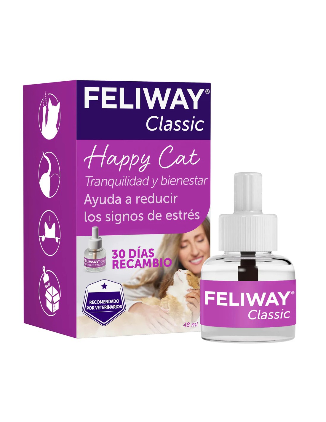Descubre el Feliway Classic Recambio 1 Mes - 48 ml, un producto diseñado para mejorar el bienestar de tu gato en situaciones de estrés.
