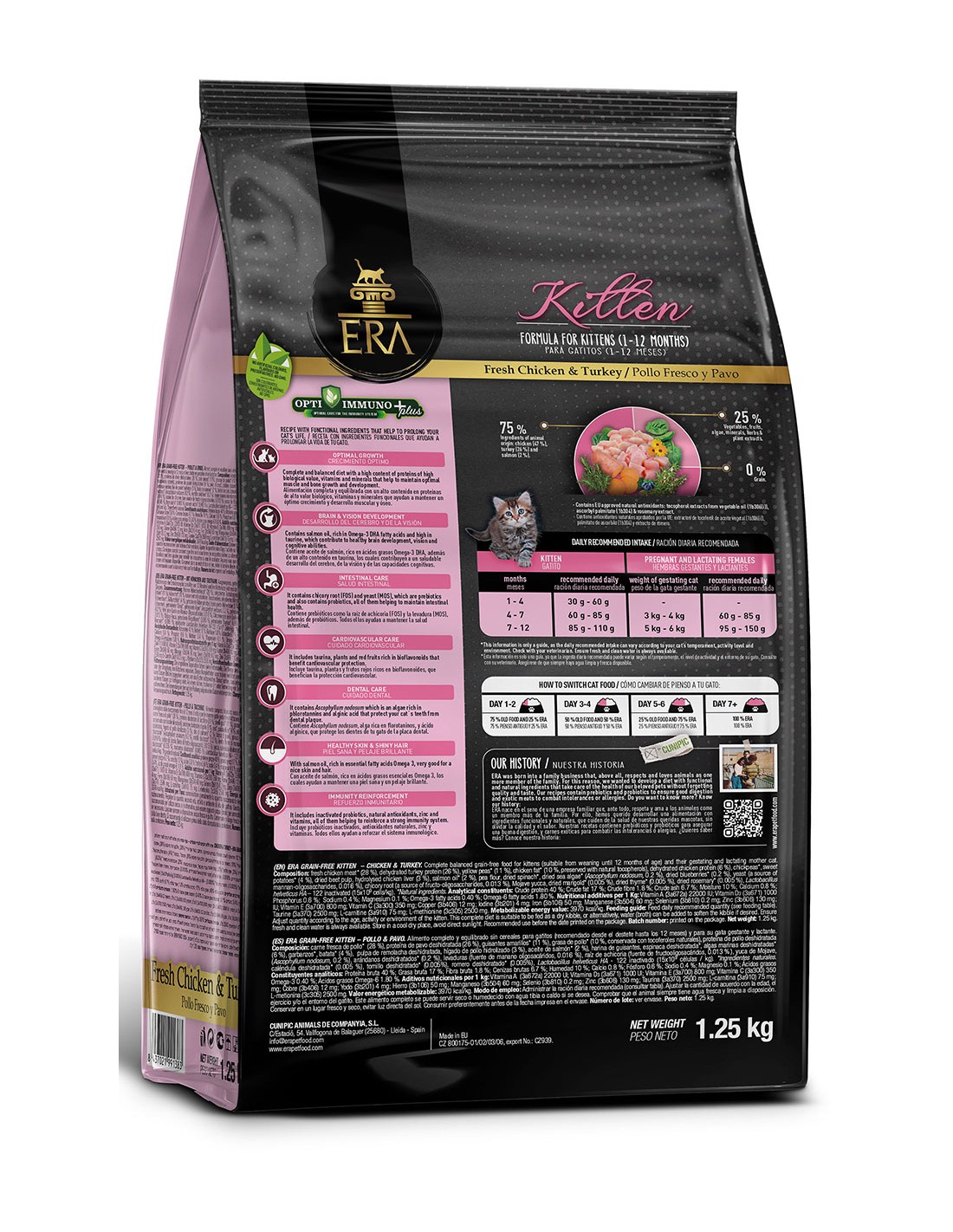 El Pienso ERA Grain Free Kitten Pollo y Pavo de 1,25 kg es una opción premium para la alimentación de gatitos.