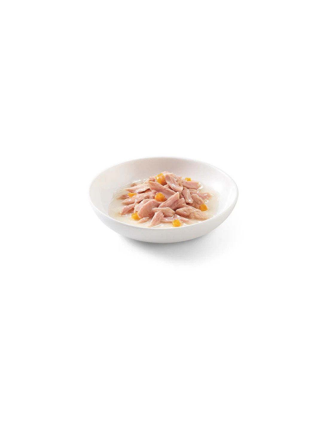 Elaborado con atún de alta calidad y calabaza, todo cocido en su propio caldo, este alimento húmedo proporciona una combinación perfecta de sabor y nutrición.