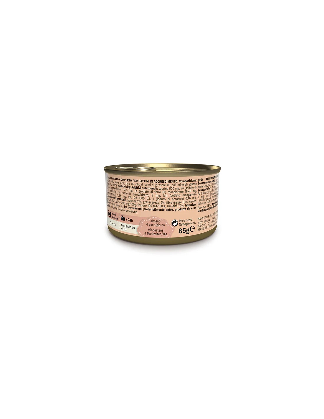 Cada lata de 85 gramos proporciona una porción fresca y nutritiva, garantizando que tus gatitos disfruten de una dieta equilibrada y saludable.