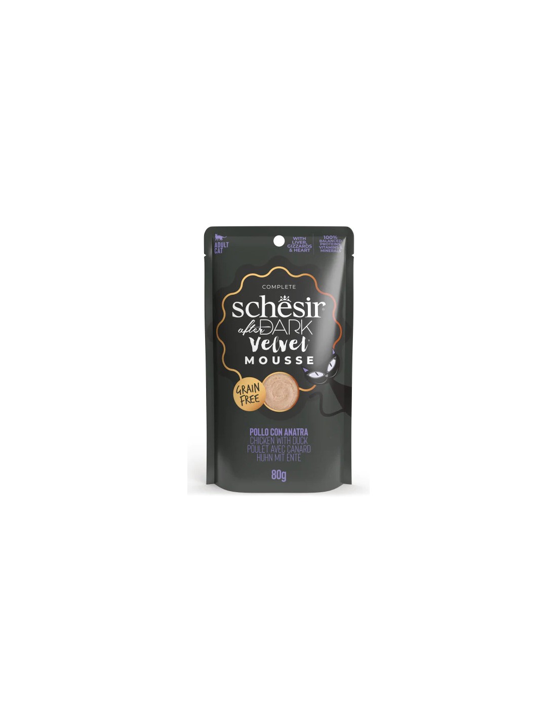 El SCHESIR After Dark Velvet Mousse Pollo y Pato en Paté para Gatos (12 Unidades) - 12 x 80 GR ofrece una experiencia culinaria única para tu gato.