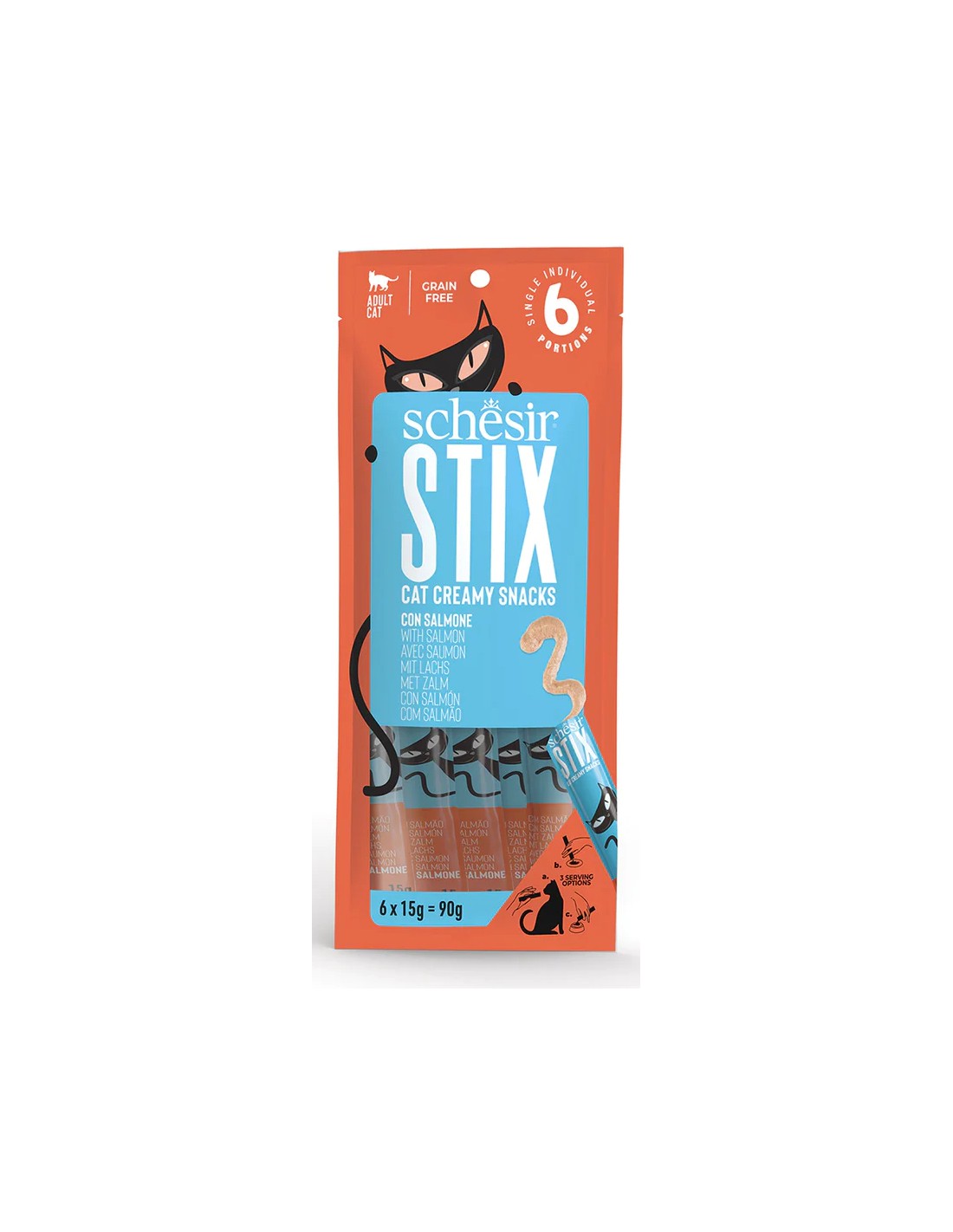 El Schesir Stix Snack Creamy Salmón para Gatos - 12 x 6 x 15 GR es la elección perfecta para mimar a tu gato con un delicioso y saludable snack.