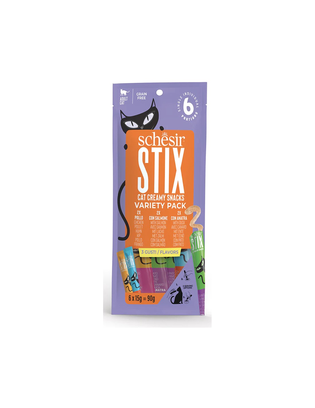 Stix Snack Creamy Variety Pack 3 Sabores Para Gatos Schesir - 12 X 6 X 15 Gr